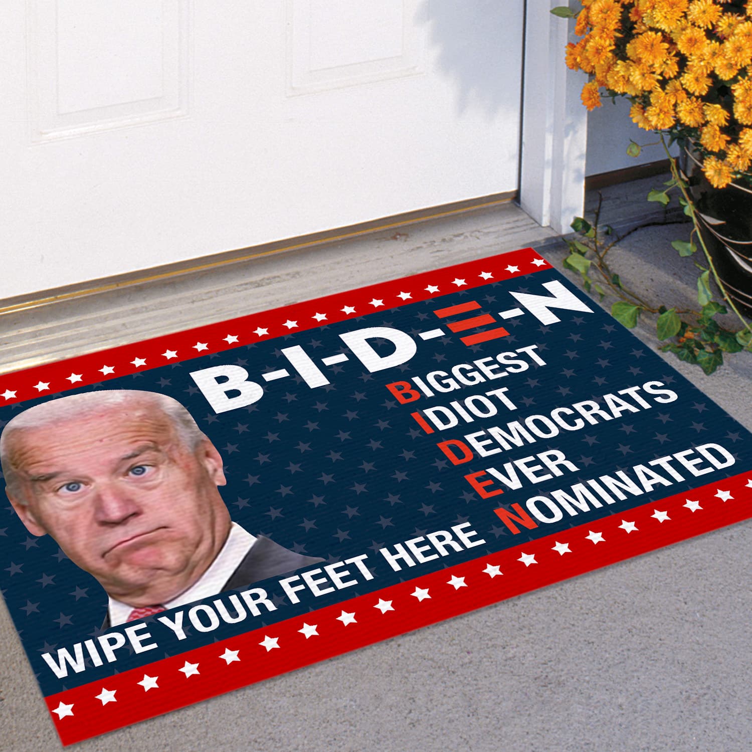 Are you spending too much time to find creative merchandise for you or suitable & special gifts for your mommy, your daddy, your son, your daughter, your children, your friends or someone you love? The struggle is over because we have various Anti Biden Doormat, Biden Sucks Doormat, Biden Biggest Idiot Democrat Ever Nominated Doormat, Biden Braindead Idiot Destroying Entire Nation Doormat, Biden Idiot Doormat, Fck Biden Doormat, which will make perfect presents for your beloveds. In order to make your present stand out, we have created lots of unique and awesome customized photo gifts & personalized designs.