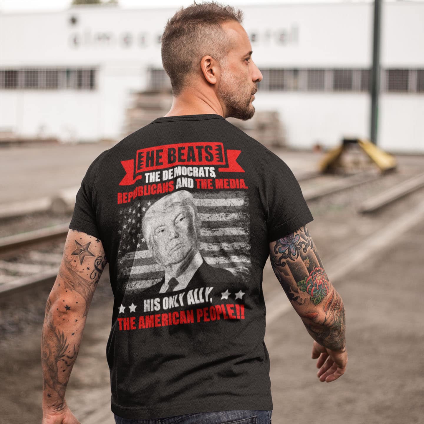 He Beats The Democrat Republicans And The Media Support Trump Print On Back T-Shirt Only