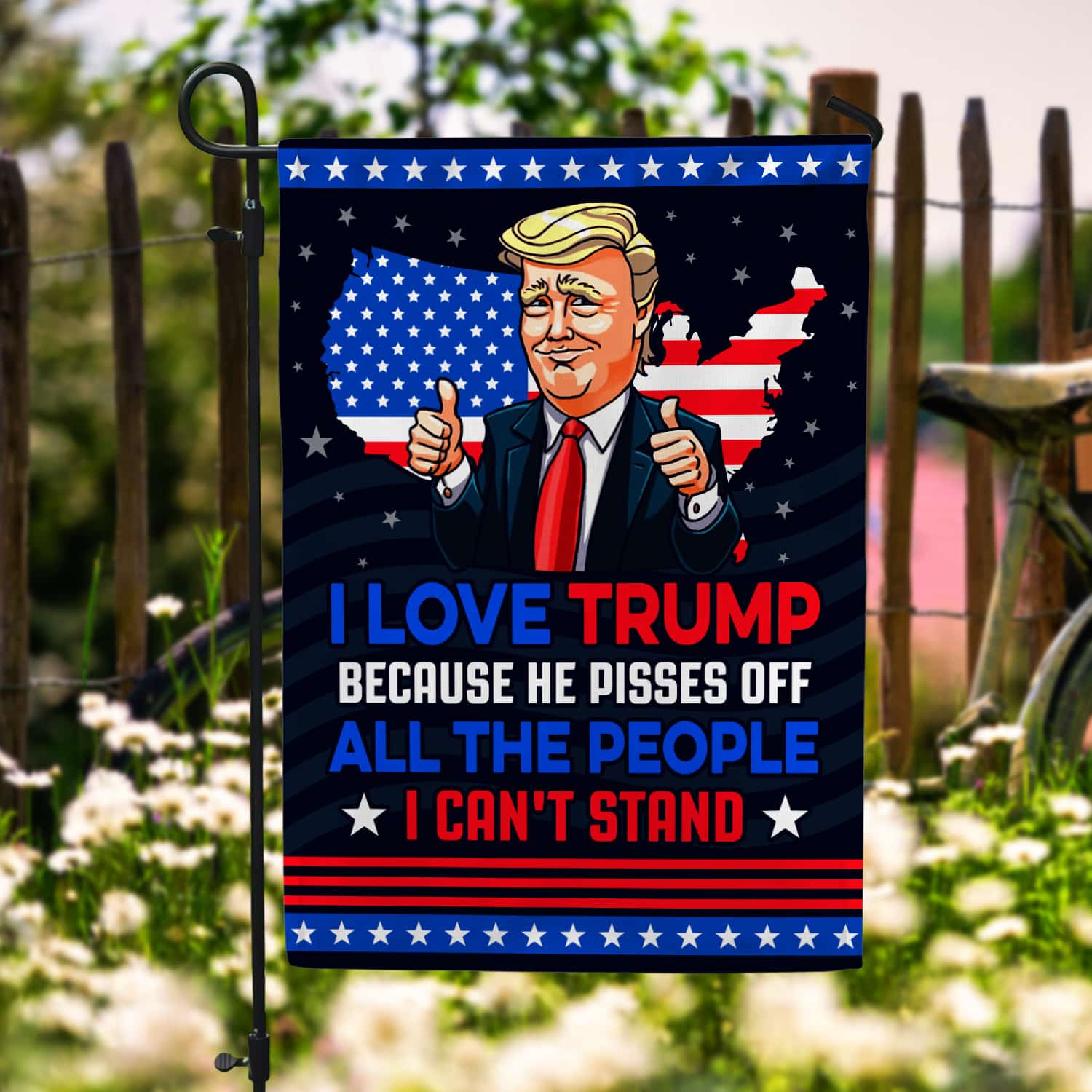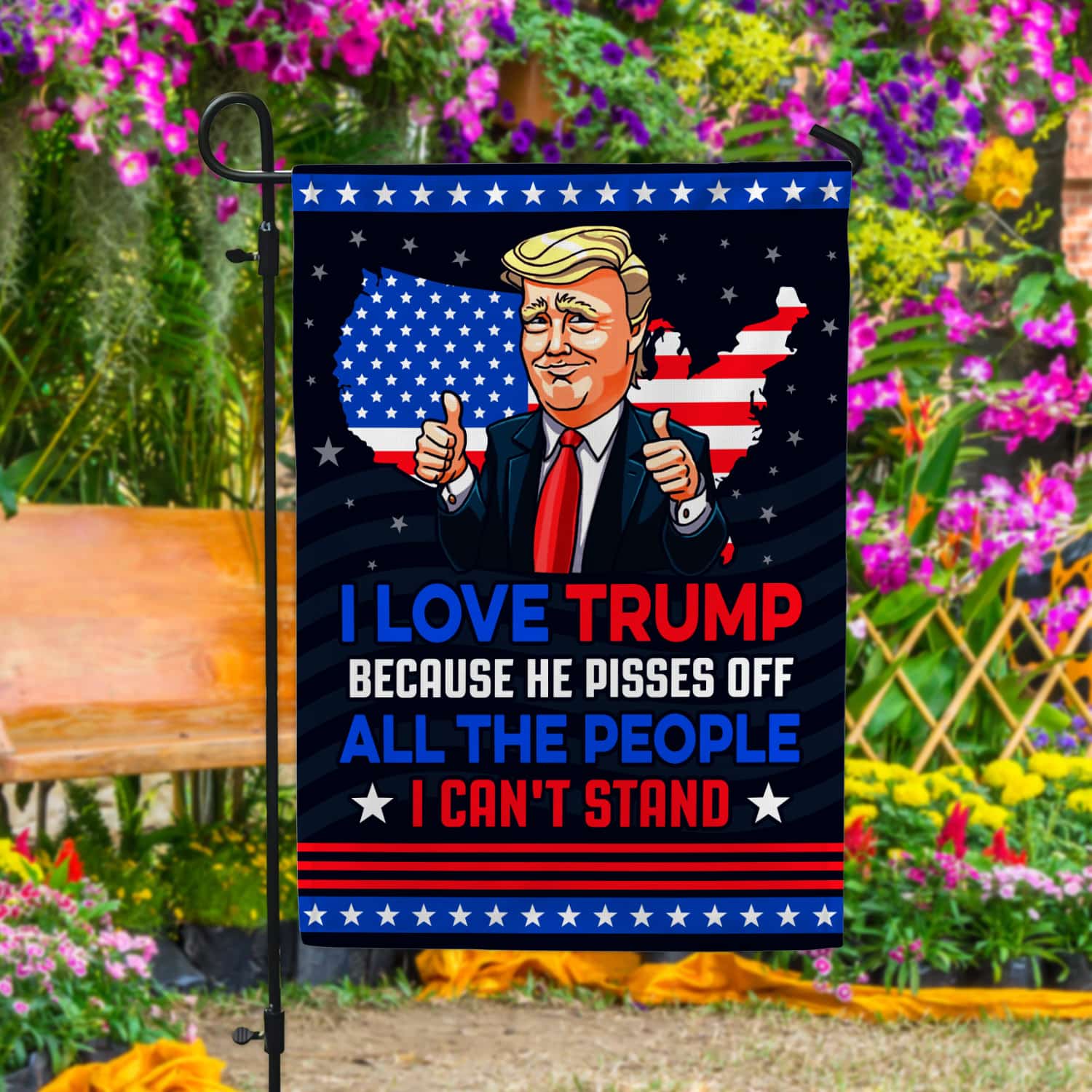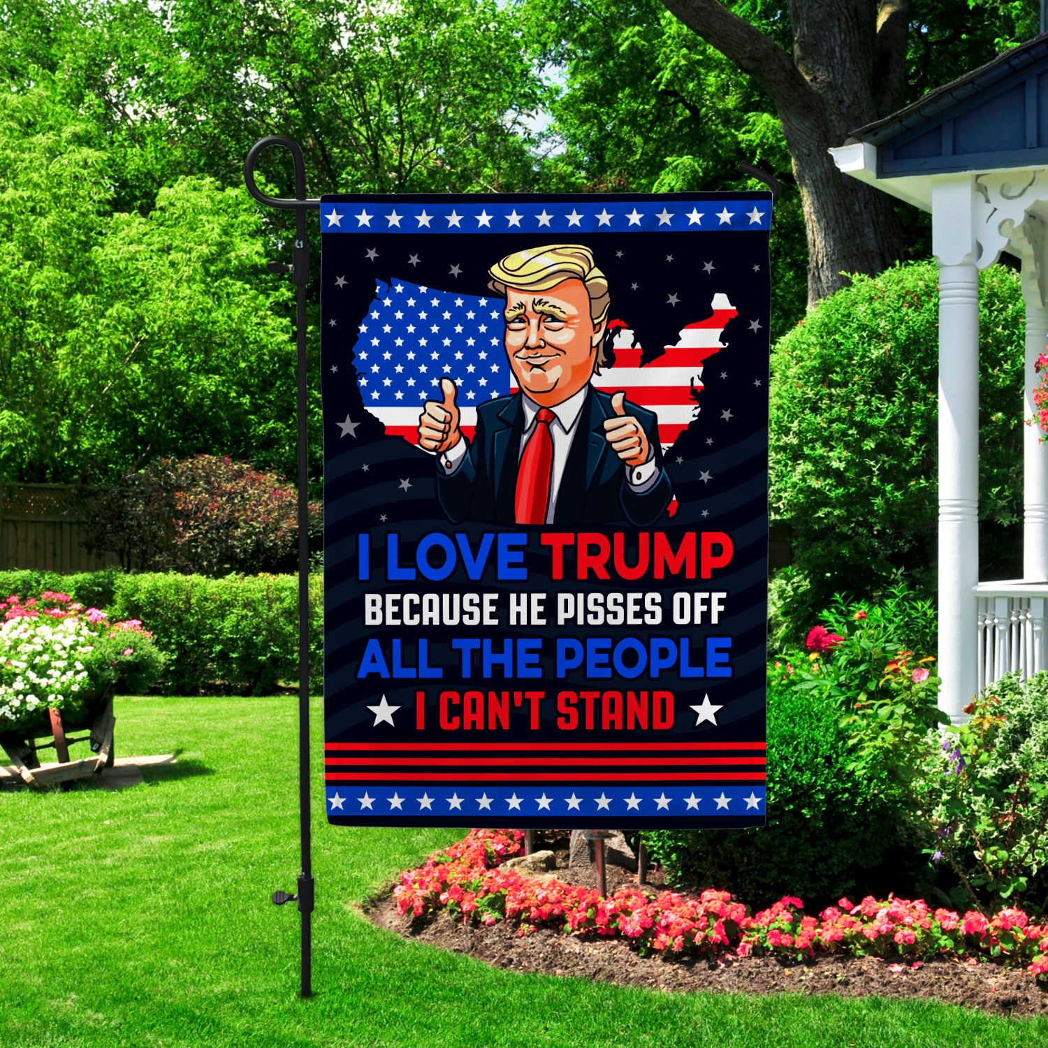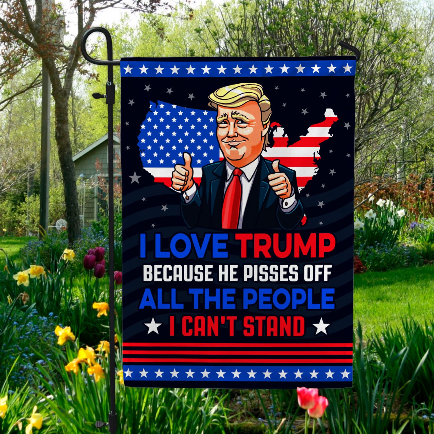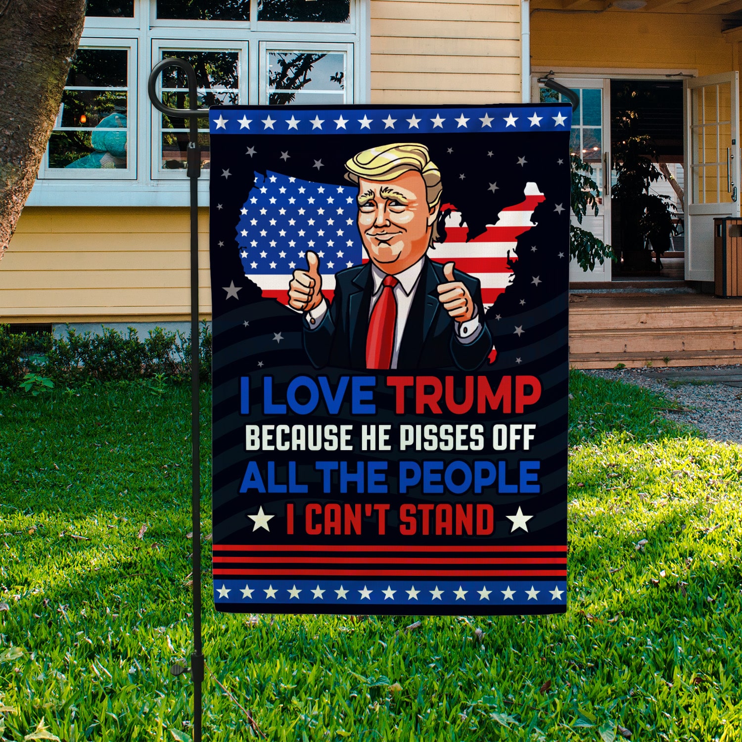 Let’s Shop I Love Trump Support Flag – Because He Pisses Off All The People I Can’t Stand Decorative Garden Flag – House Wall Flag!