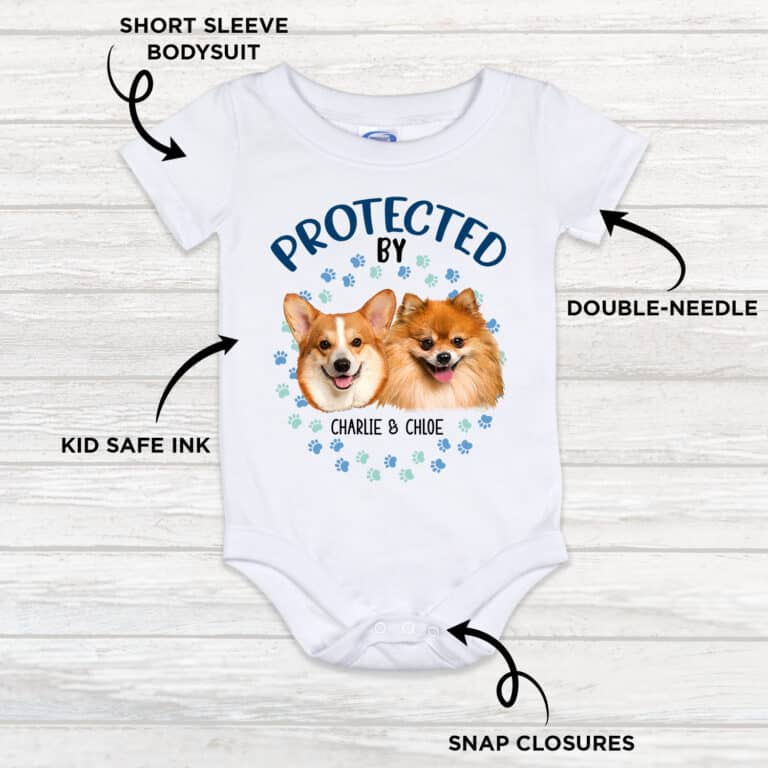Are you spending too much time to find creative merchandise for you or suitable & special gifts for your mommy, your daddy, your son, your daughter, your children, your friends or someone you love? The struggle is over because we have various Baby Shower Gift, Protected By Dog Onesie, Protected By Pets Onesie, Newborn Baby Gift, Personalized Baby Onesie, Custom Dog Onesie, Personalized Protected By Dog Onesie, Personalized Protected By Dog Bodysuit, Protected By Cat Onesie which will make perfect presents for your beloveds. In order to make your present stand out, we have created lots of unique and awesome customized photo gifts & personalized designs.