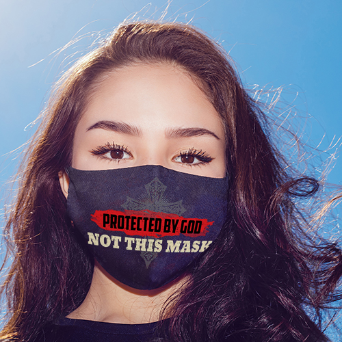 Shop Protected By GOD Not This Mask Funny Washable Reusable Custom – Printed Cloth Face Mask Cover.
