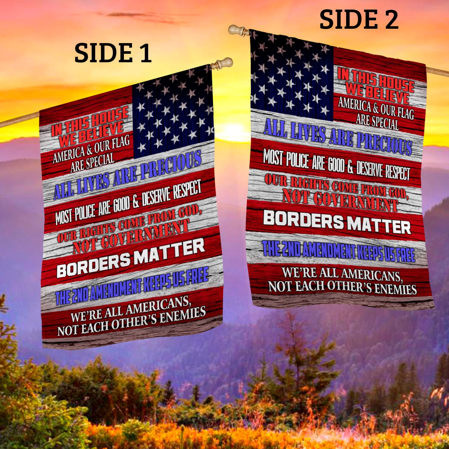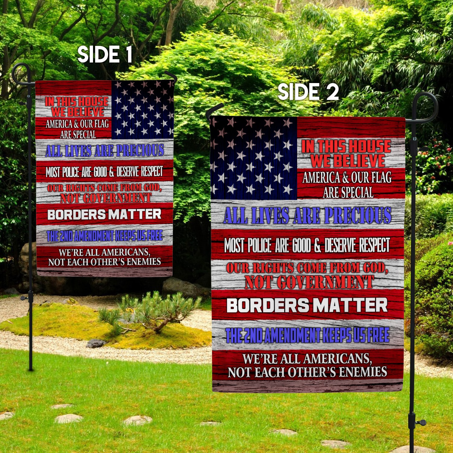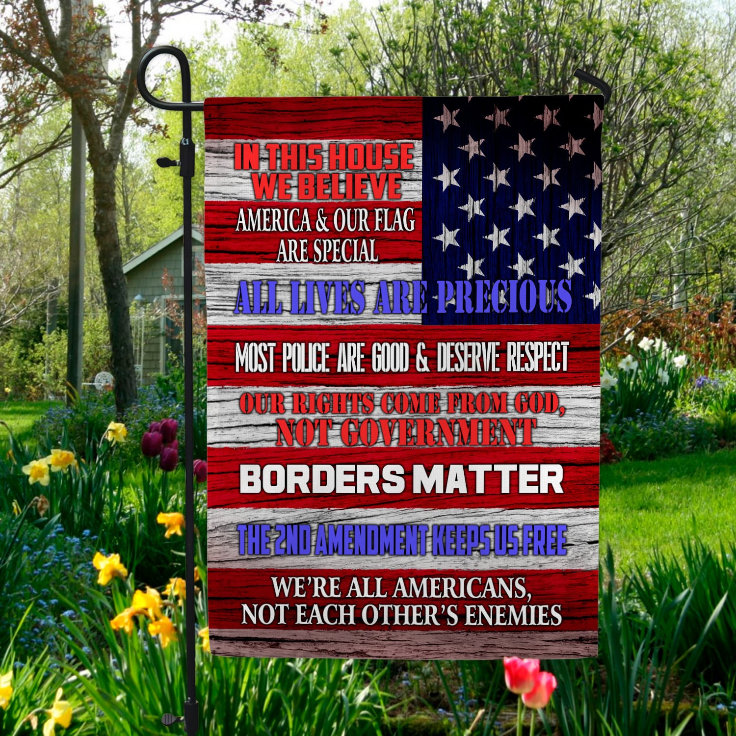 Are you spending too much time to find creative merchandise for you or suitable & special gifts for your mommy, your daddy, your son, your daughter, your children, your friends or someone you love? The struggle is over because we have various In This House We Believe America and Our Flag Are Special All Lives Are Precious Outdoor Garden House Flag, in This House We Believe America Flag Pride Garden House Wall Flag, We’re All Americans Flag, Proud Us Patriot America Flag, Proud Patriotic Us America Flag, Proud American and Your Love of Freedom Flag which will make perfect presents for your beloveds. In order to make your present stand out, we have created lots of unique and awesome customized photo gifts & personalized designs.