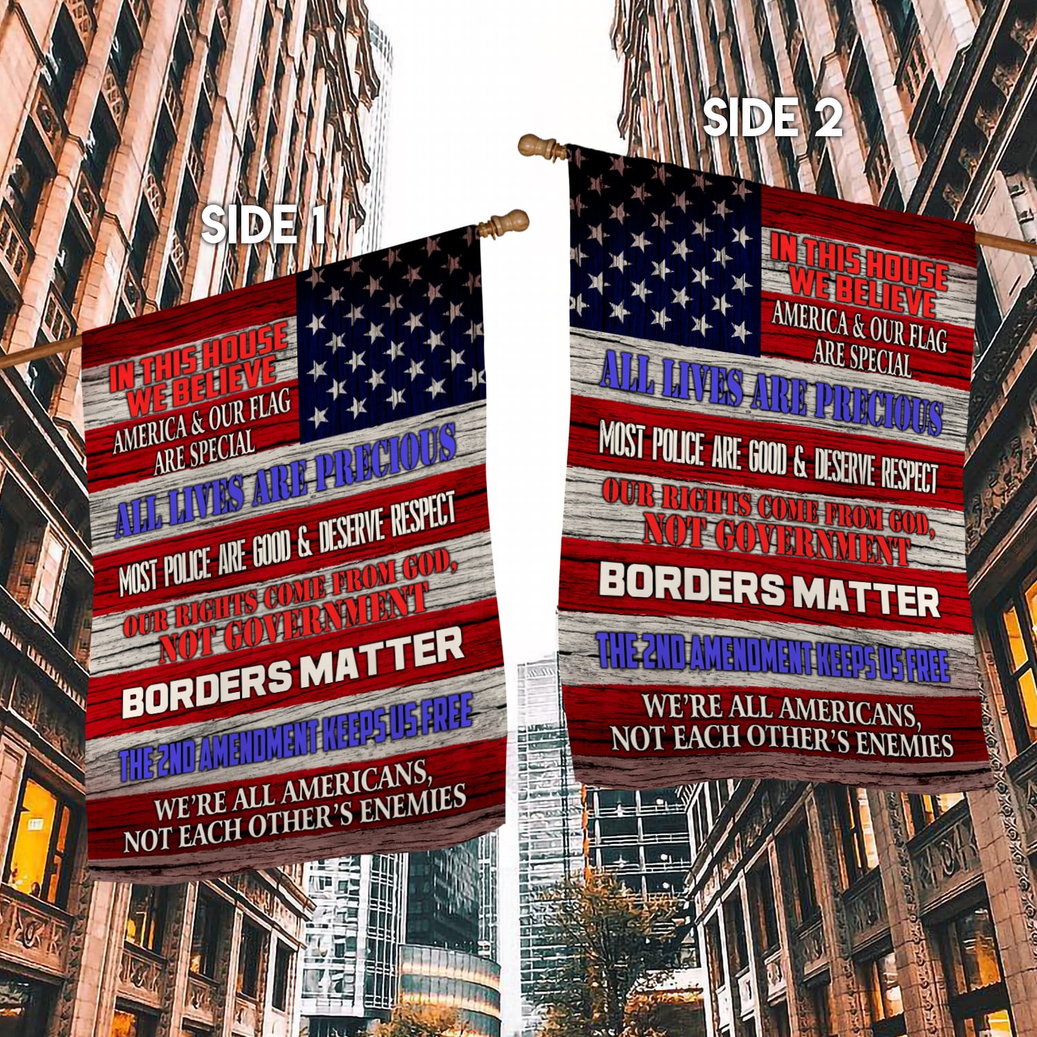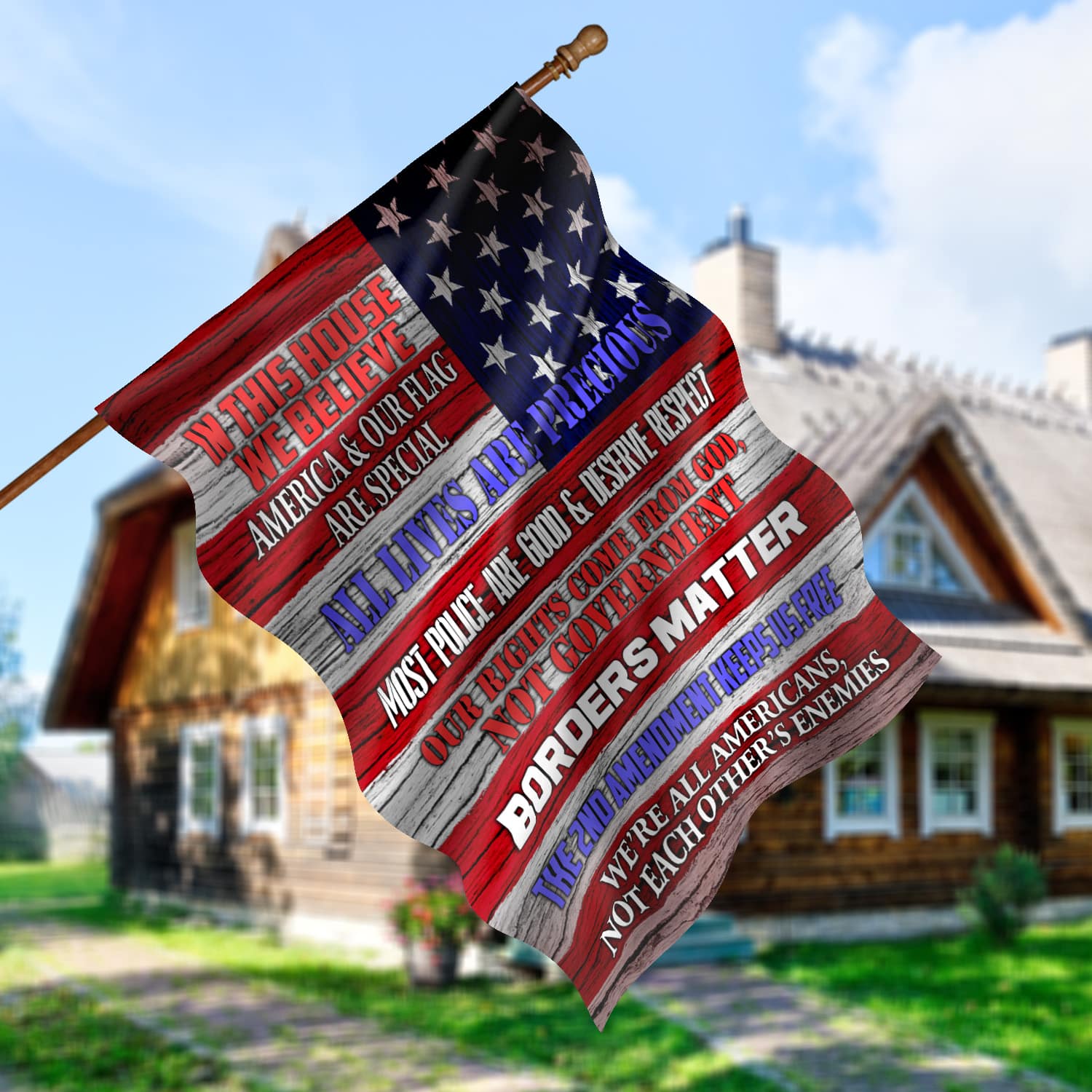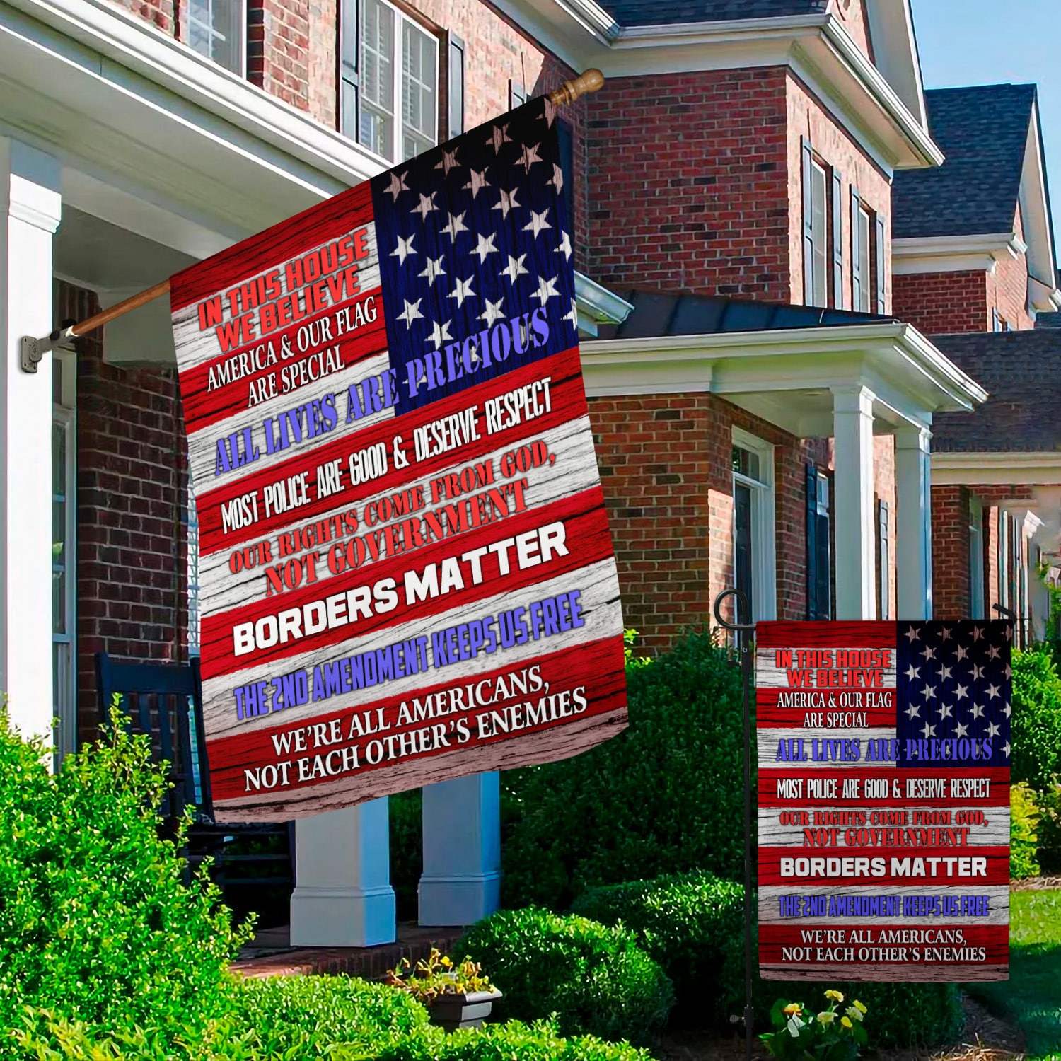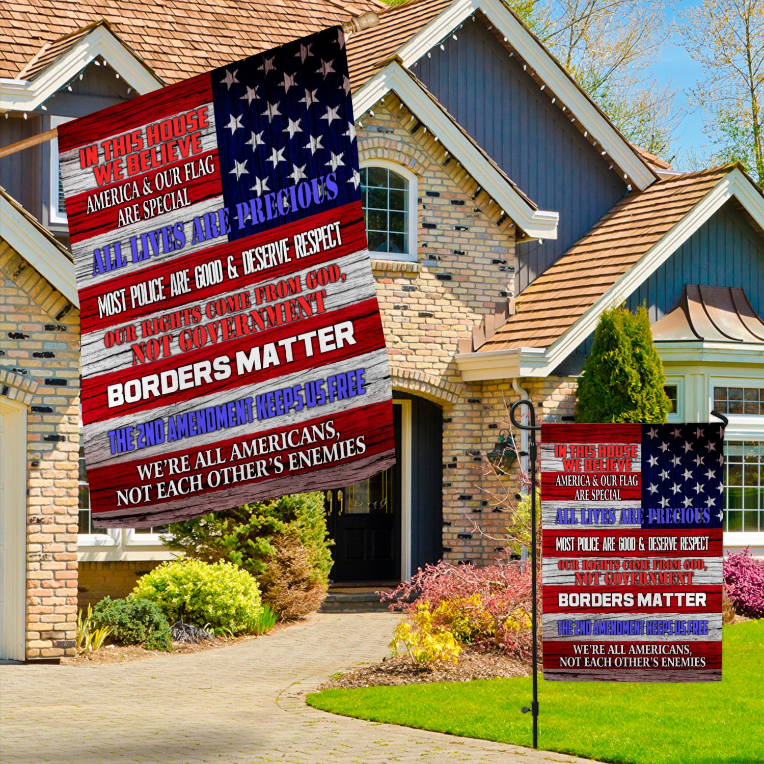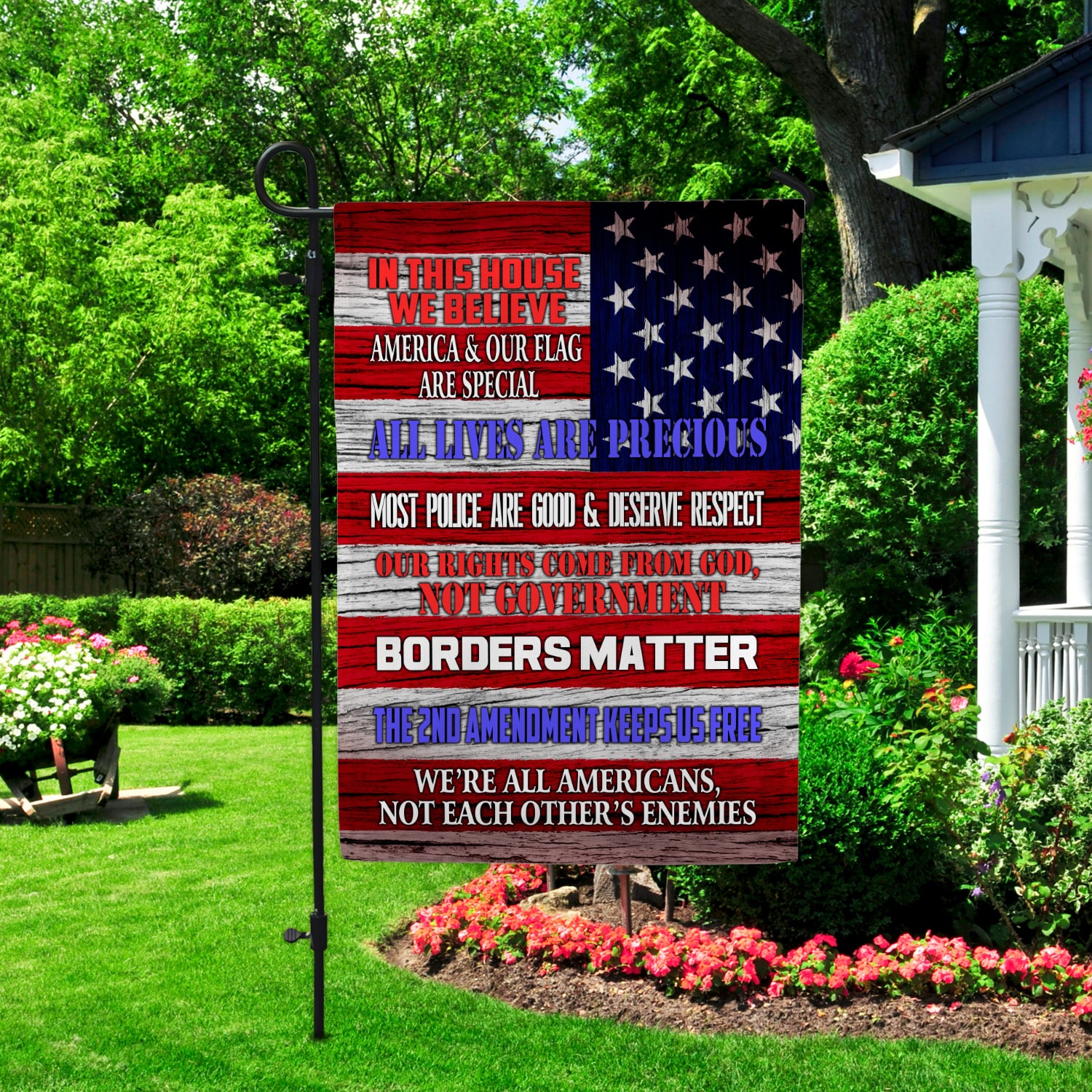 Let’s Shop In This House We Believe America And Our Flag Are Special All Lives Are Precious Outdoor Garden House Flag!