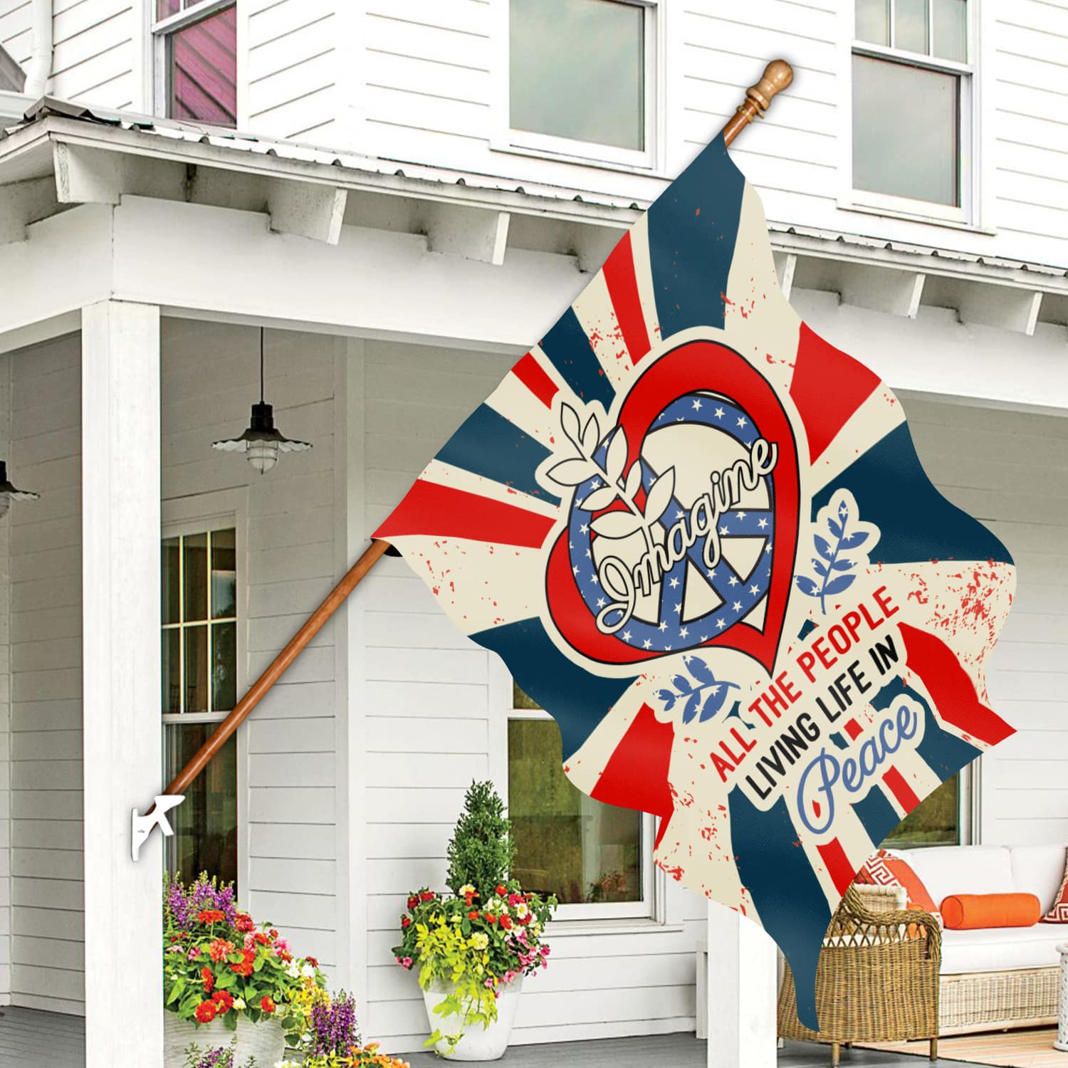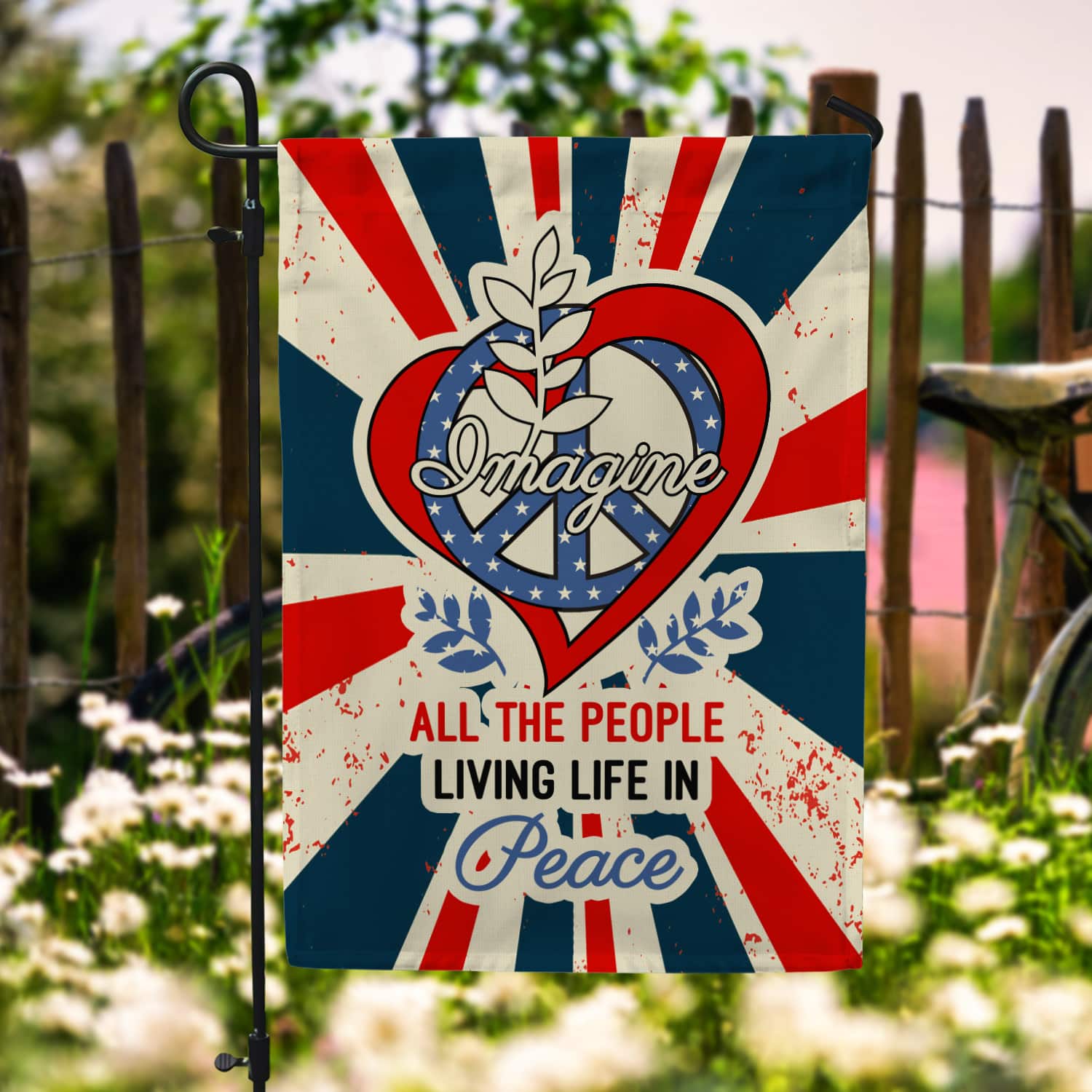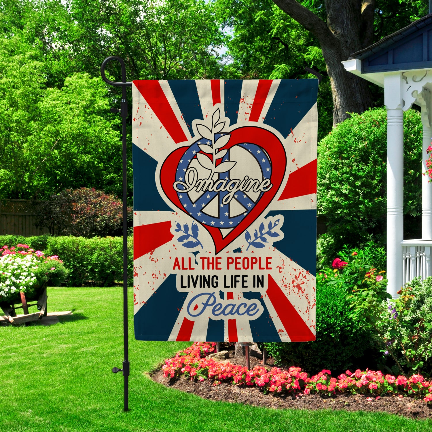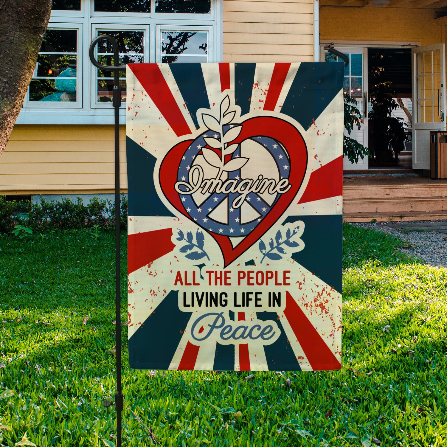 Let’s Shop Imagine All The People Living Life in Peace Proud America Patriotic Peace Love Hippie Outdoor Garden House Flag!