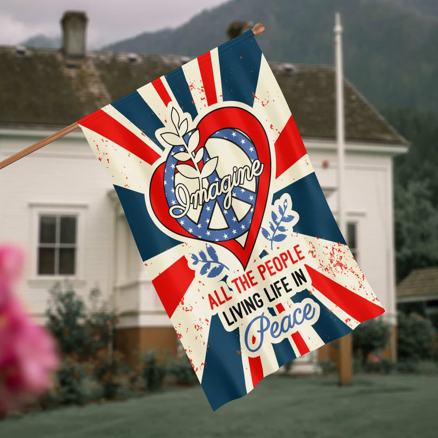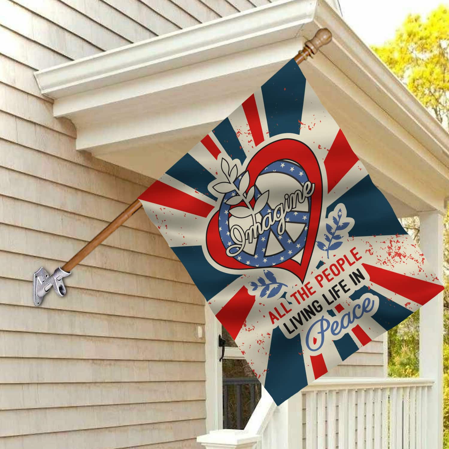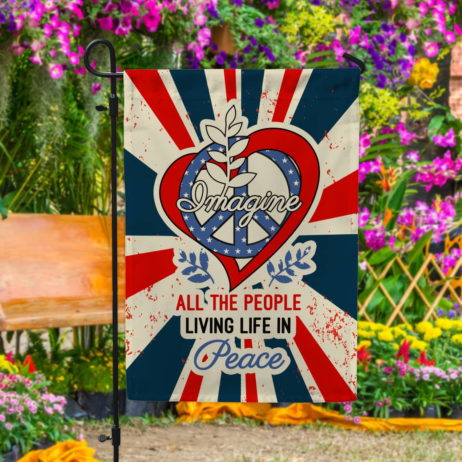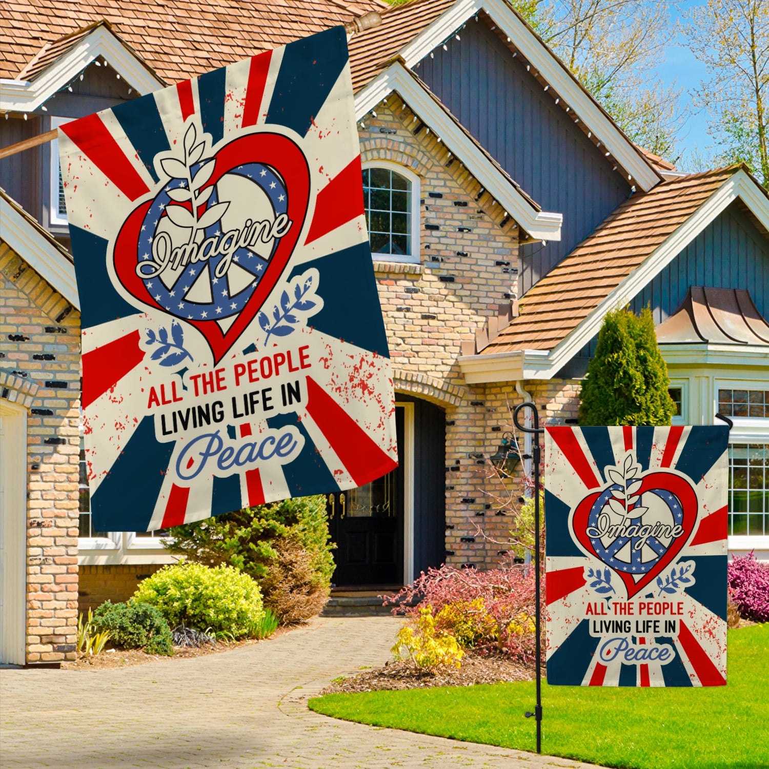 Let’s Shop Imagine All The People Living Life in Peace Proud America Patriotic Peace Love Hippie Outdoor Garden House Flag!