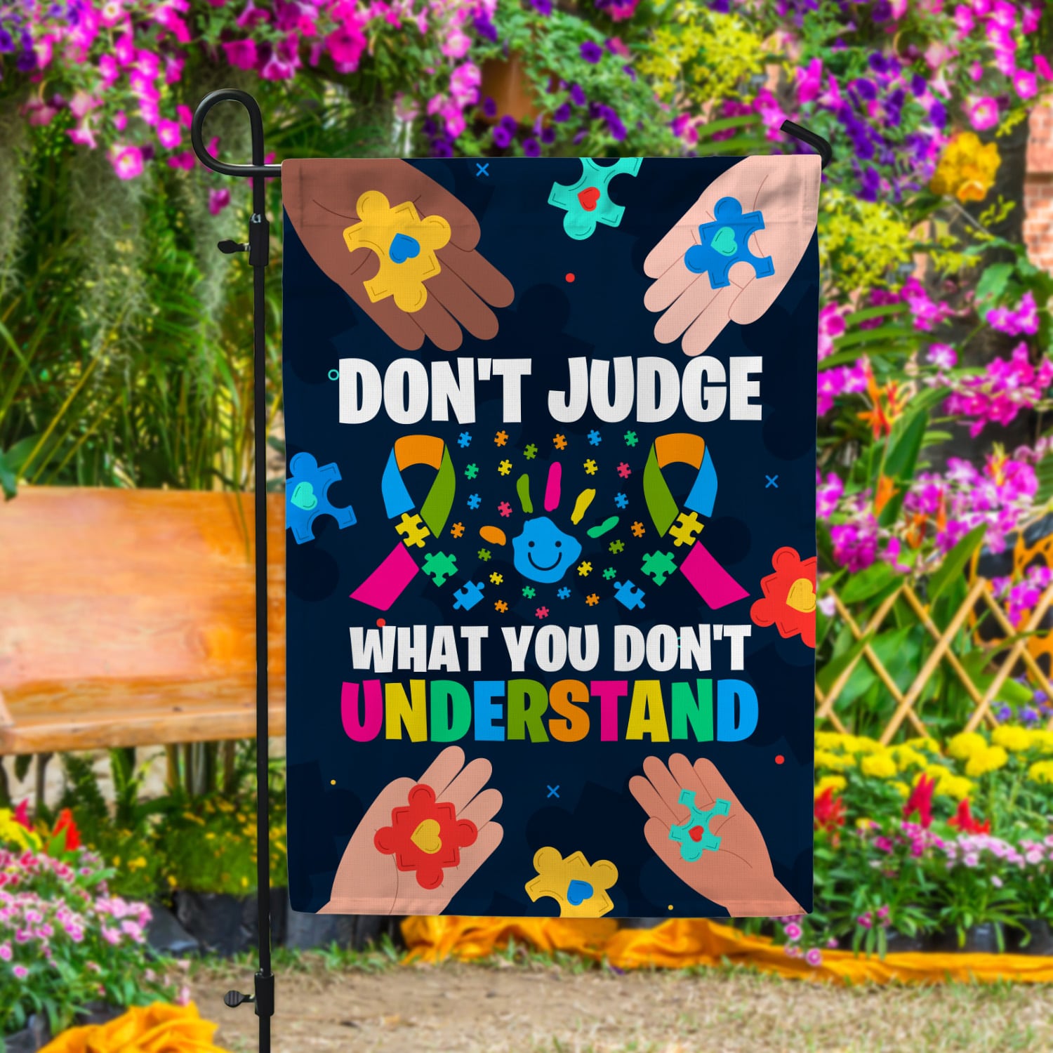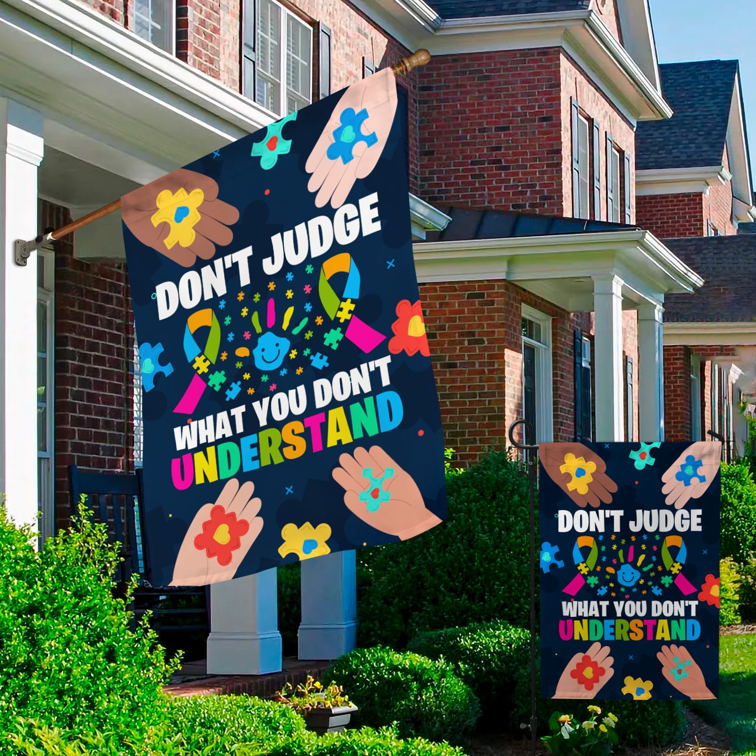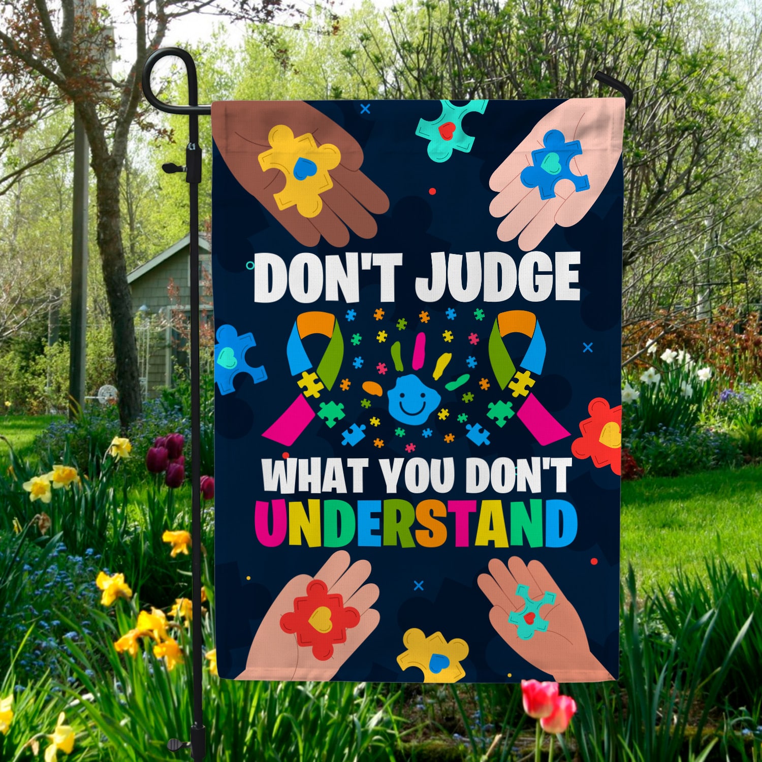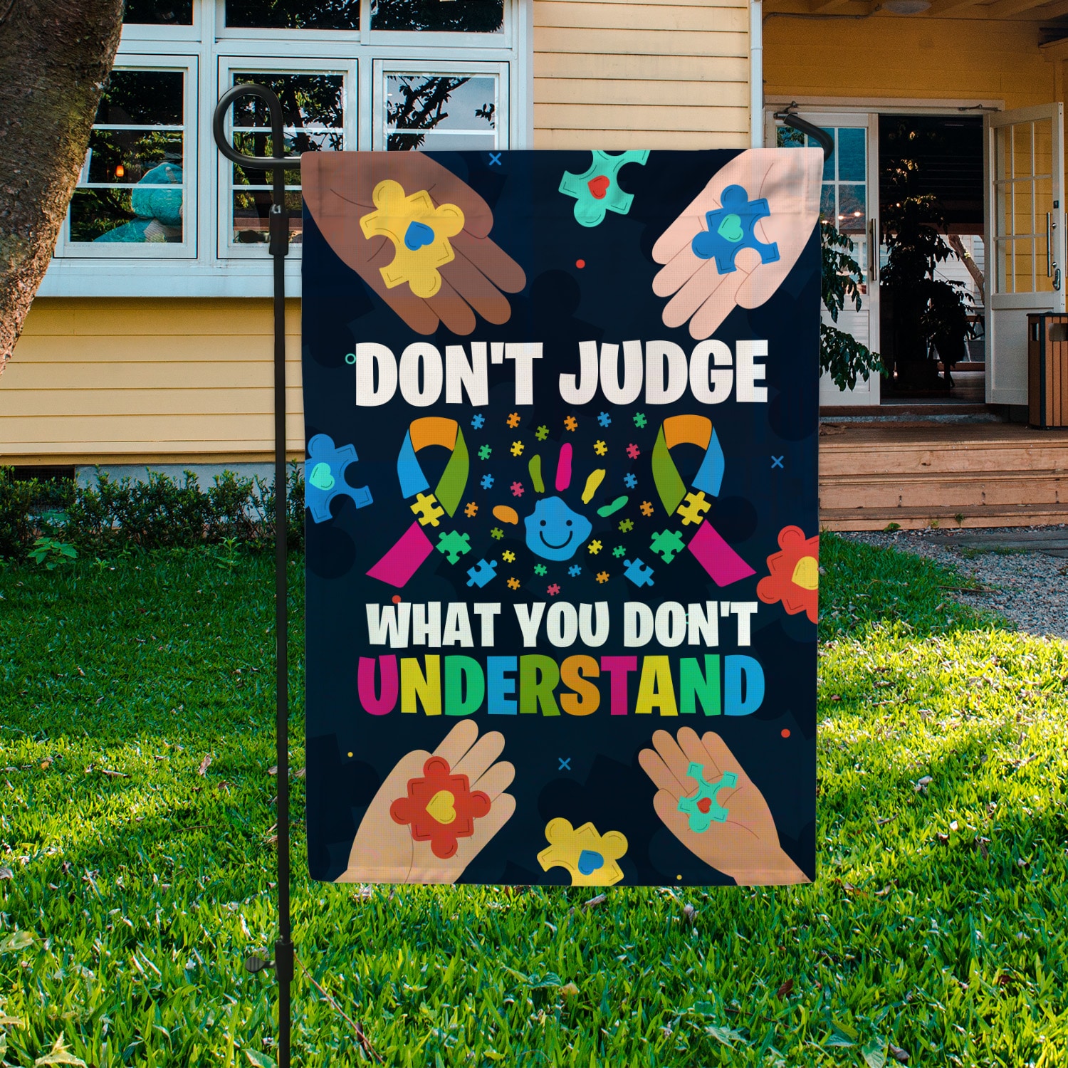 Let’s Shop Don’t Judge What You Don’t Understand Autism Awareness Decorative Garden Flag – House Flag – Wall Flag!