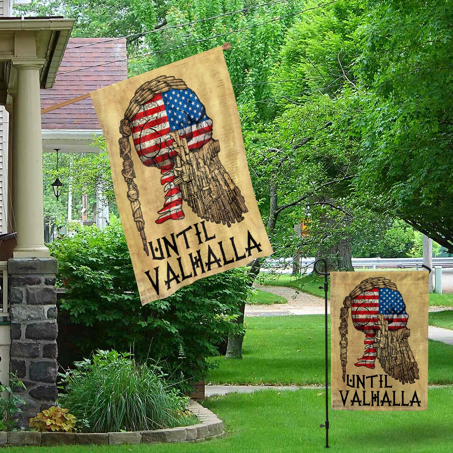Let’s Shop Viking Warrior Until Valhalla Odin Norse Man Quote Pride 2nd Amendment American Garden Flag – Wall House Flag!