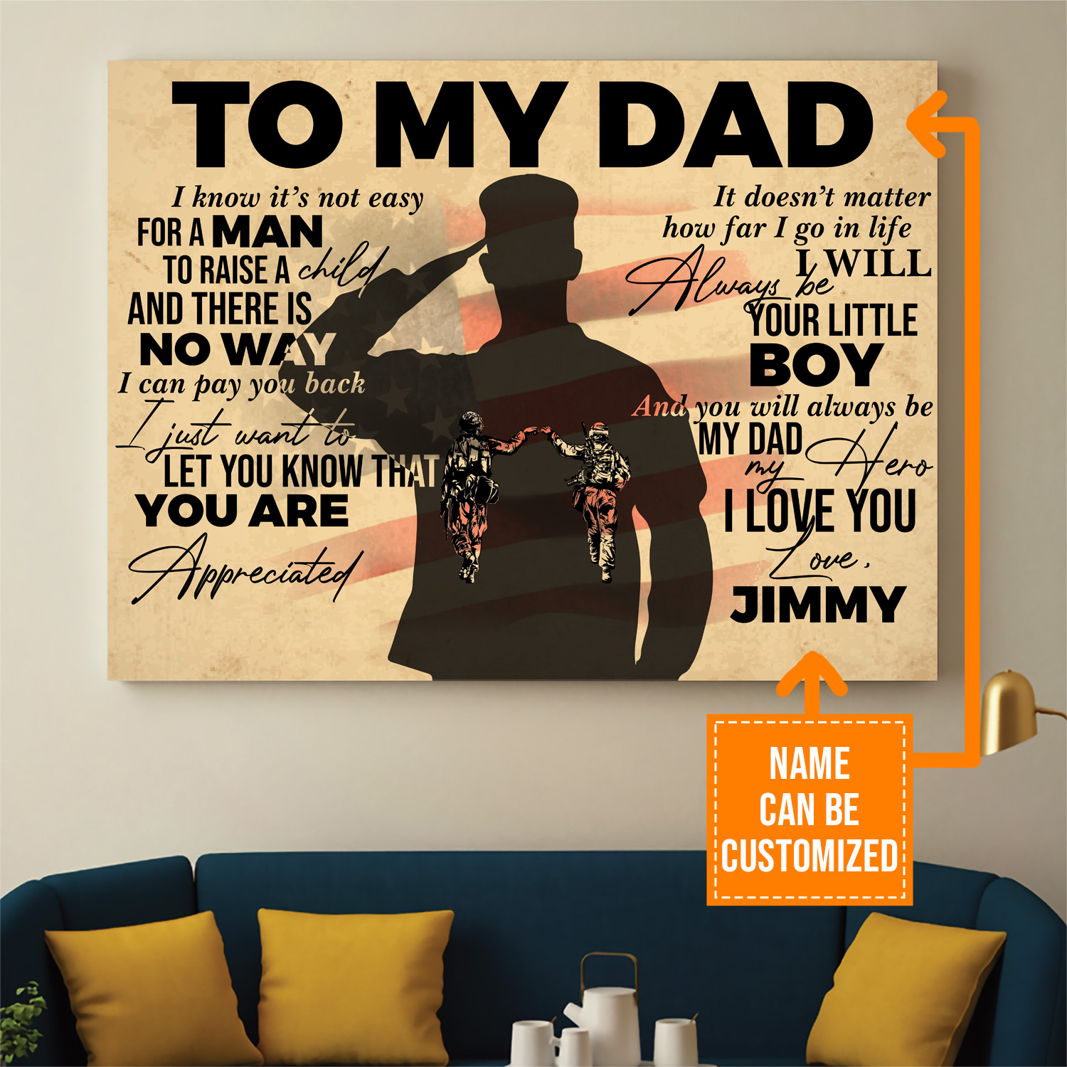 Let’s Shop Personalized Text To My Dad It’s Not Easy To Raise A Child Army Solider Father’s Day Military Canvas Poster!