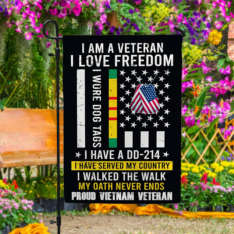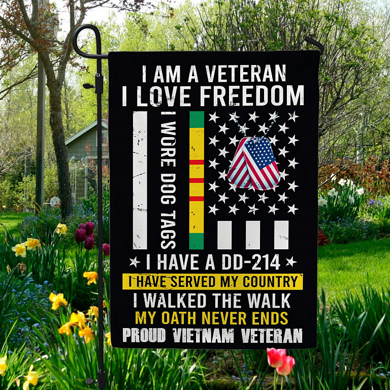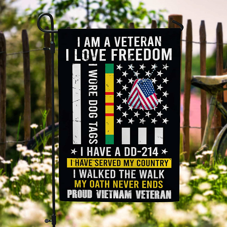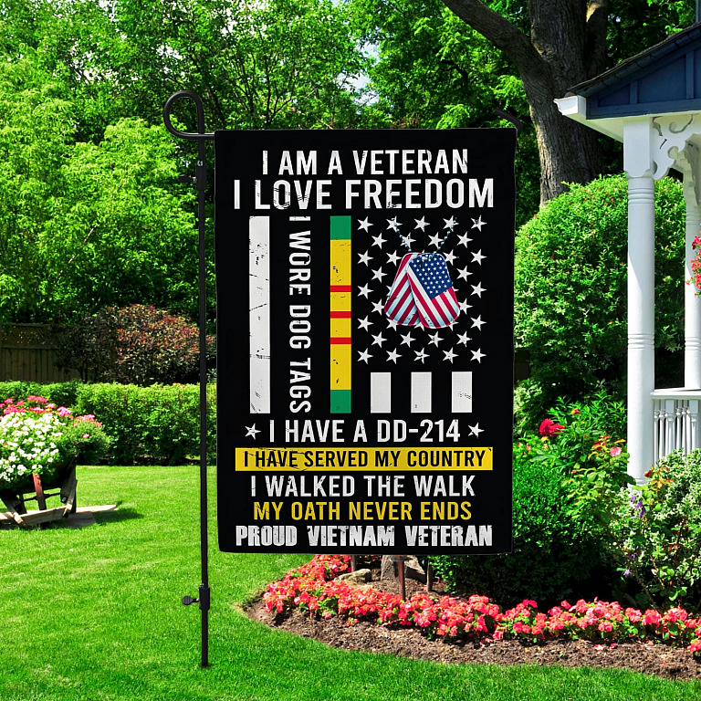 Let’s Shop I Am A Veteran I Love Freedom Proud Vietnam Veteran Decorative Garden Flag – House Flag!