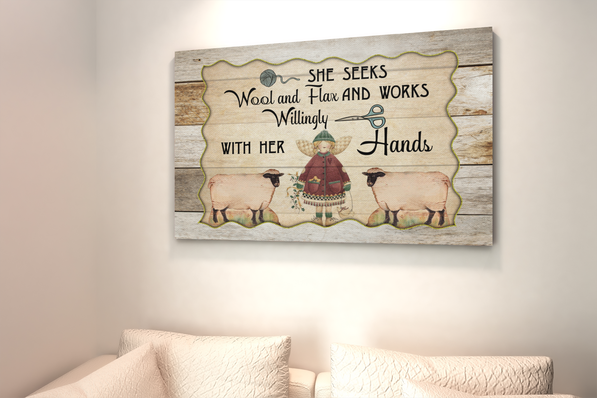 Shop She Seeks Wool and Flax and Willingly Works With Her Hands Wrapped Framed Canvas Prints – Unframed Poster.
