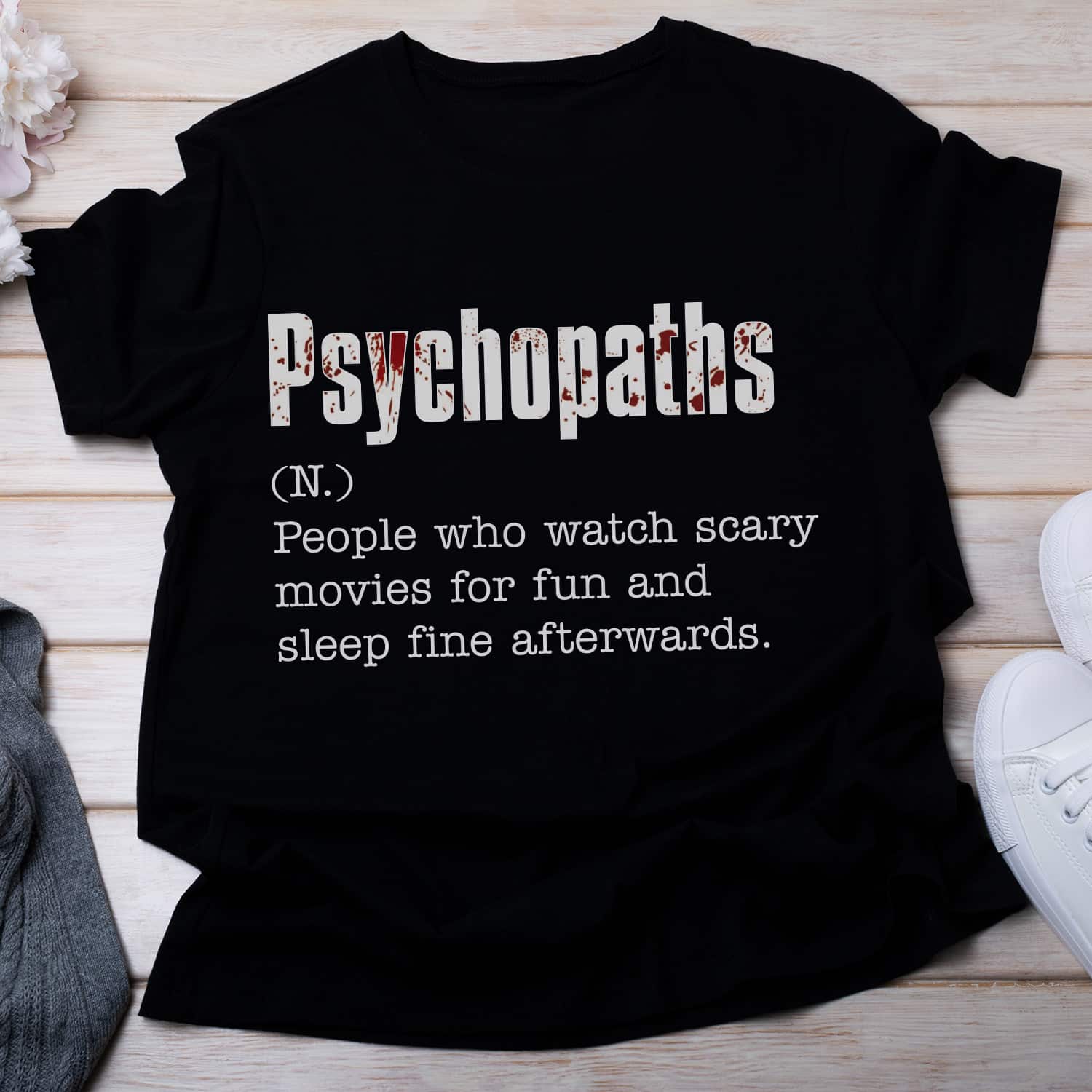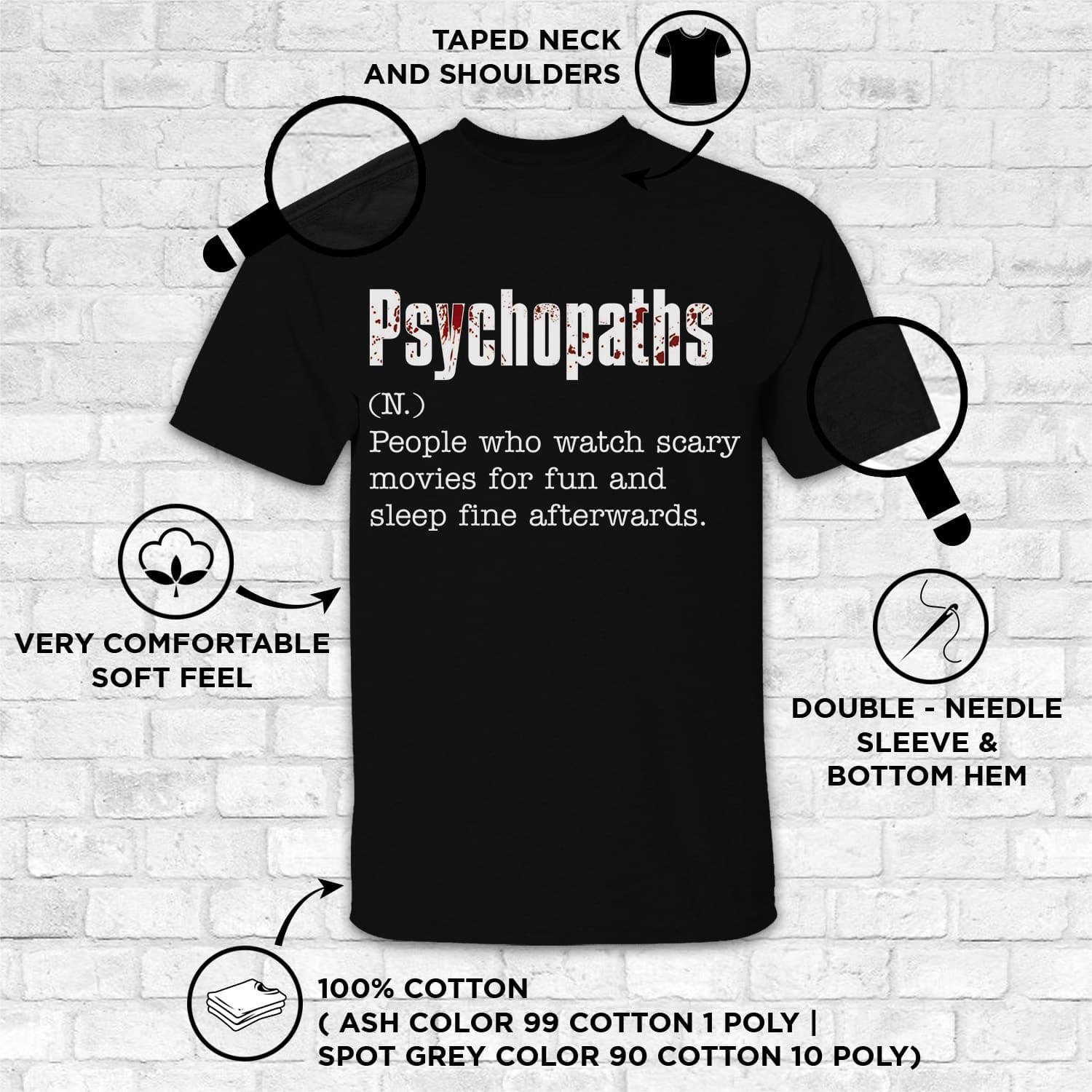 Are you spending too much time to find creative merchandise for you or suitable & special gifts for your mommy, your daddy, your son, your daughter, your children, your friends or someone you love? The struggle is over because we have various Psychopaths Shirt, Psychopaths Definittion Shirt, Watch Horror Movies Shirt, Halloween Shirt, Halloween Gifts which will make perfect presents for your beloveds. In order to make your present stand out, we have created lots of unique and awesome customized photo gifts & personalized designs.