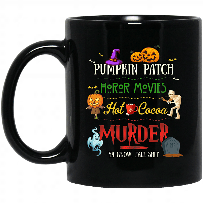 Shop Pumpkin Patch Horror Movies Hot Cocoa Murder Ya Know Fall Shit Halloween Mug – Travel Mug – Beer Stein – Water Bottle.