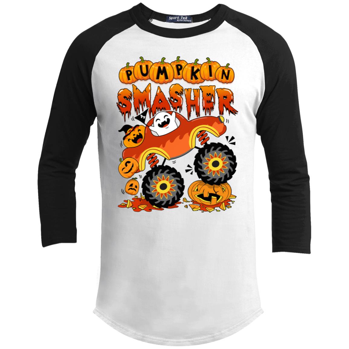 Pumpkin Smasher Cute Monster Truck Kids Halloween 3/4 Raglan Jersey – Long Sleeve Shirt – Baseball Tee