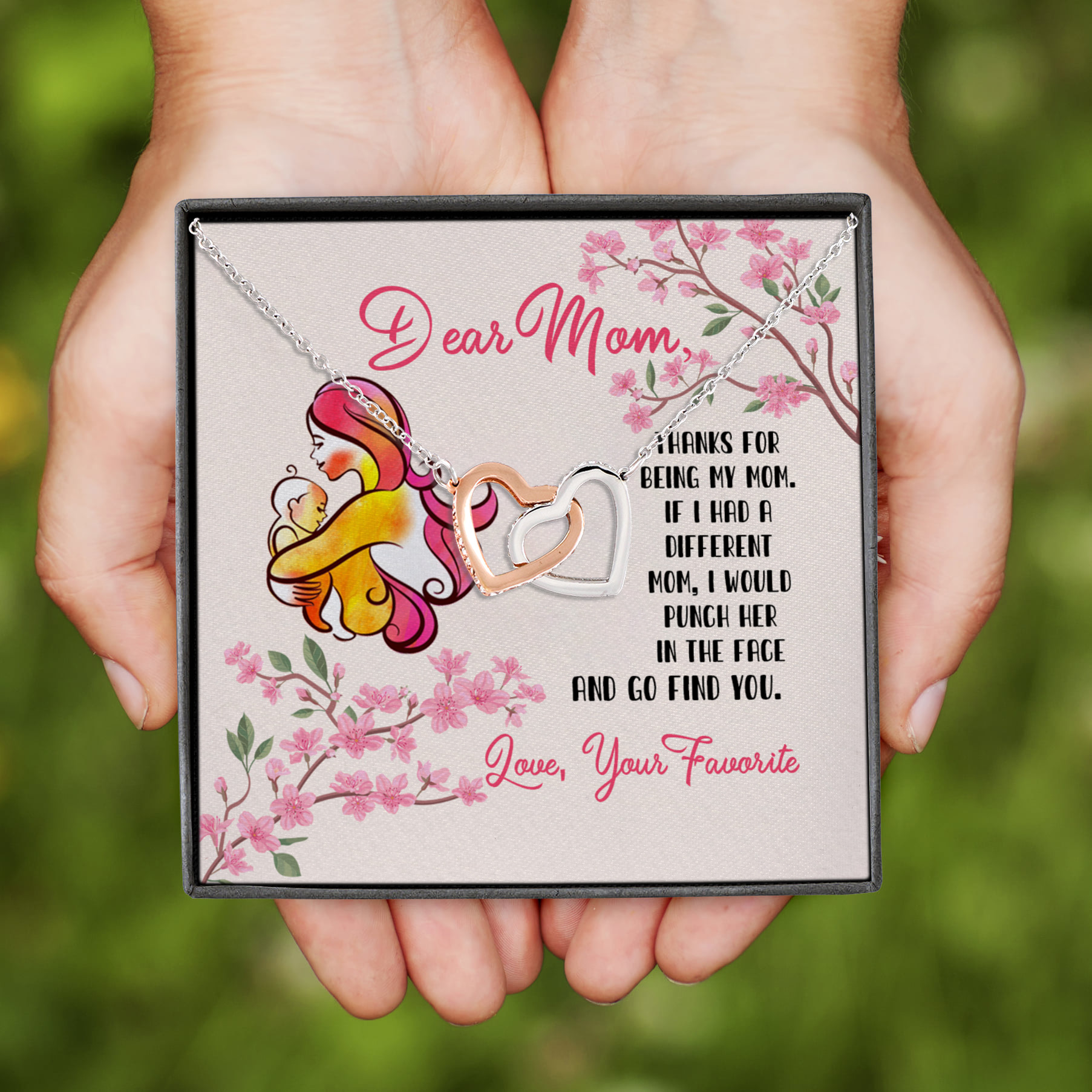 Let’s Shop Dear Mom If I Had A Different Mom I Would Punch Her In The Face Interlocking Hearts Pendant Necklace!