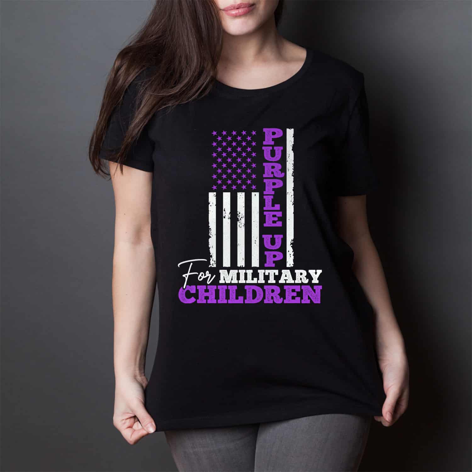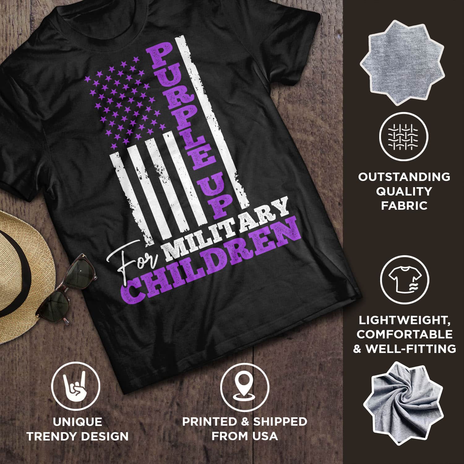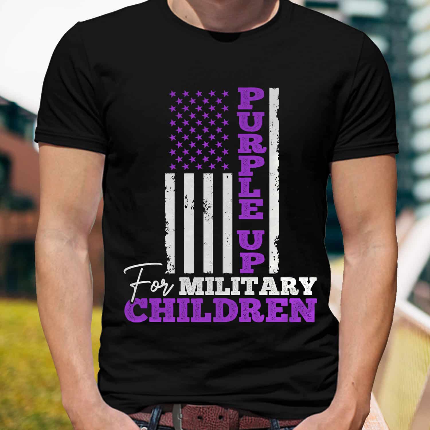 Are you spending too much time to find creative merchandise for you or suitable & special gifts for your mommy, your daddy, your son, your daughter, your children, your friends or someone you love? The struggle is over because we have various Purple Up for Military Children Shirt, Purple Up for Military Children American Flag Shirt, Purple Up Shirt, Purple Up American Flag Shirt, Military Kids Awareness Shirt which will make perfect presents for your beloveds. In order to make your present stand out, we have created lots of unique and awesome customized photo gifts & personalized designs.