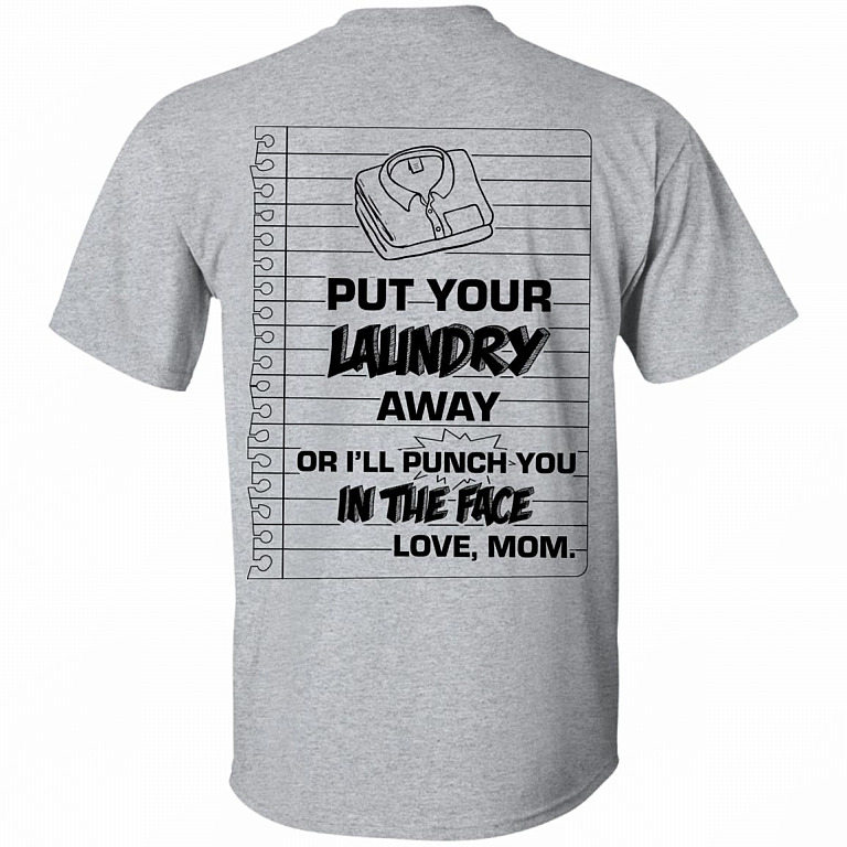 Put Your Laundry Away Or I’ll Punch You In The Face Love Mom Print On Back T-Shirt