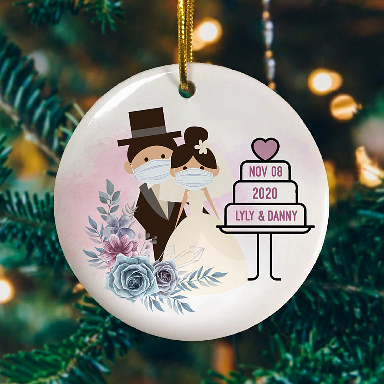 Let’s Shop Personalize Quarantined Wedding Newlywed Gift Decorative Christmas Ornament – Holiday Flat Circle Ornament!