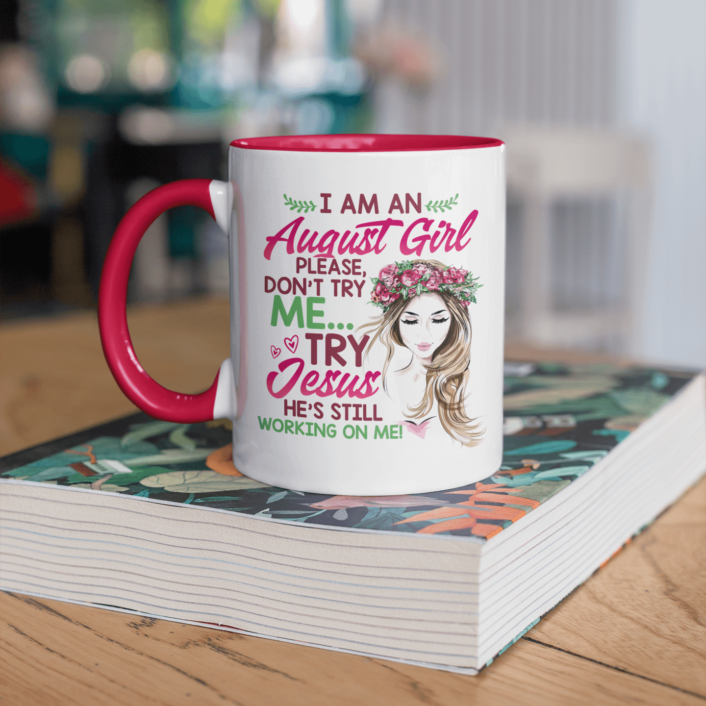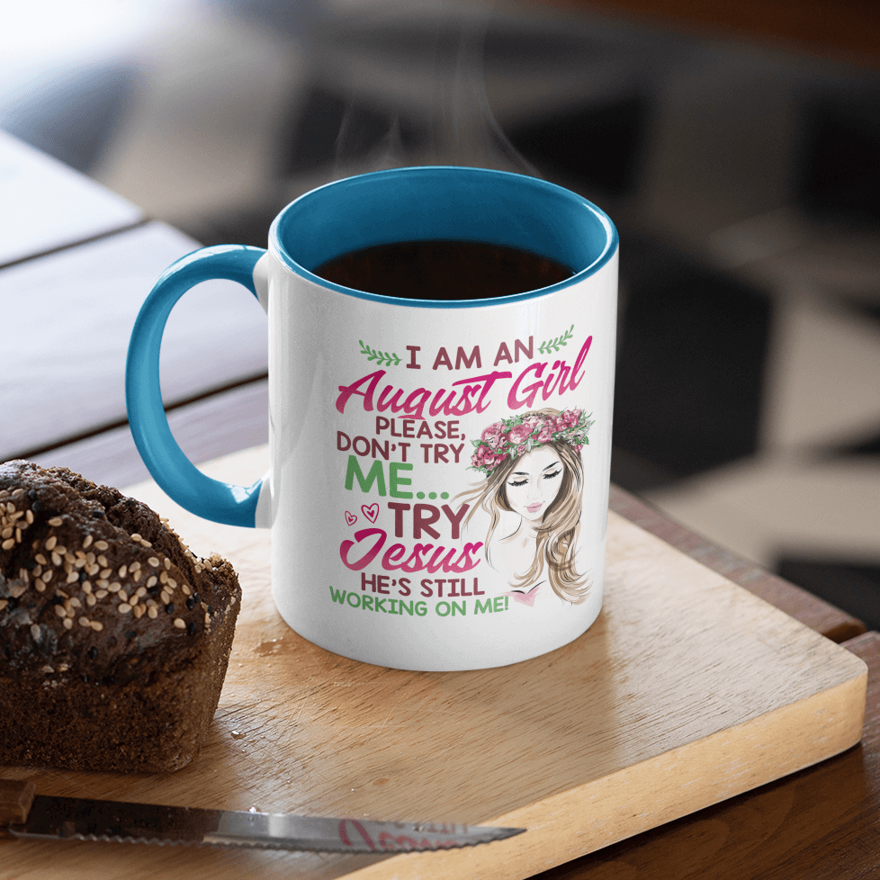 Let’s Shop I Am an August Girl Please Don’t Try Me Try Jesus He’s Still Working on Me – Funny Birthday Christian Accent Mug!