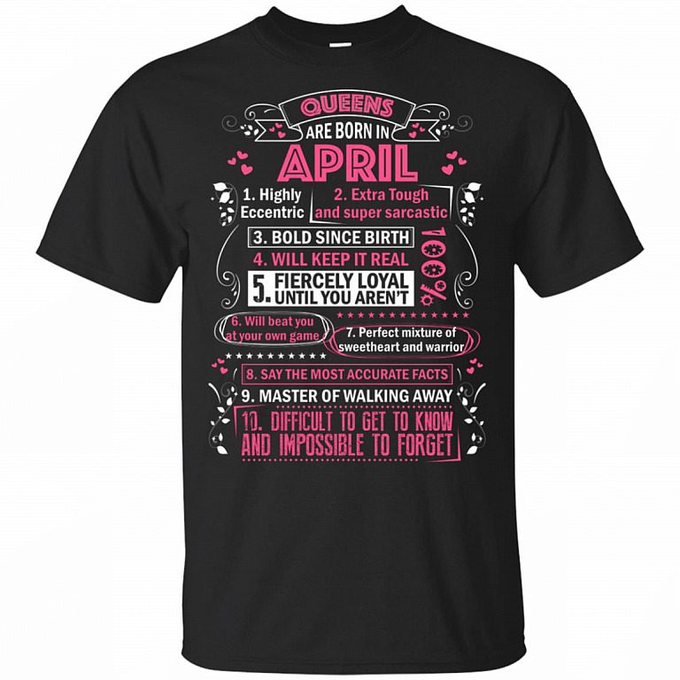 Queens are Born in April Highly Eccentric 10 Reasons Funny T-Shirt