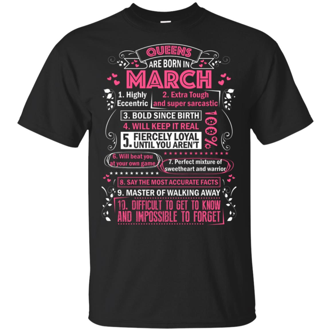 Queens are Born in March Highly Eccentric 10 Reasons Funny T-Shirt