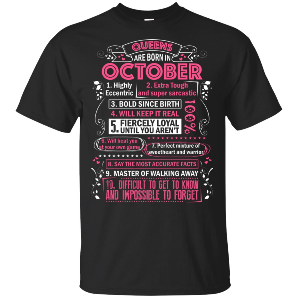 Queens are Born in October Highly Eccentric 10 Reasons Funny T-Shirt