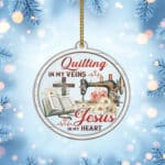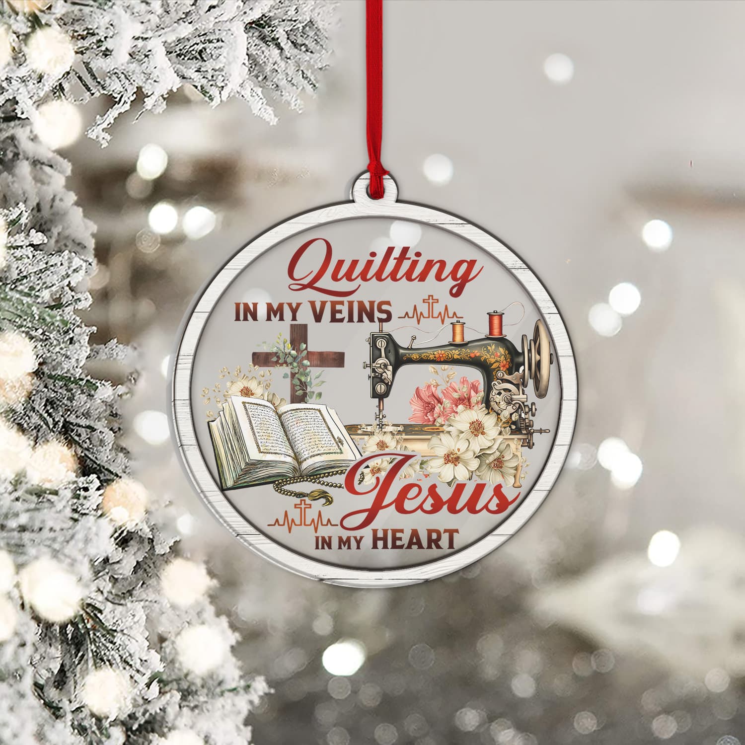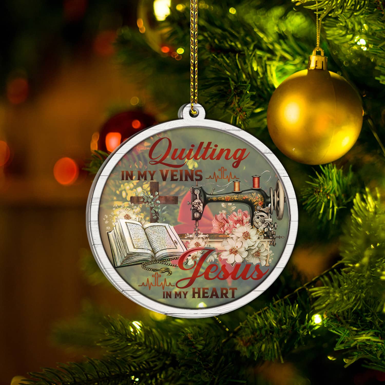 Let’s Shop Quilting In My Veins Jesus In My Heart Transparent Acrylic Wood Christmas Ornament Keepsake!