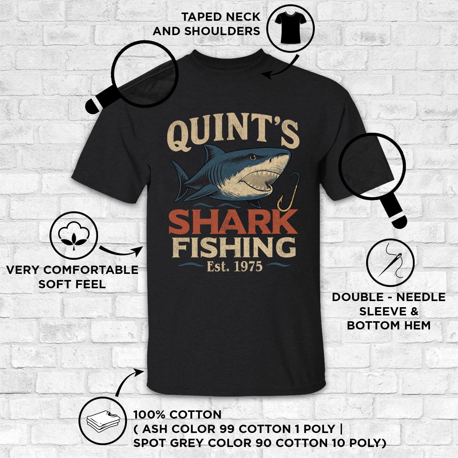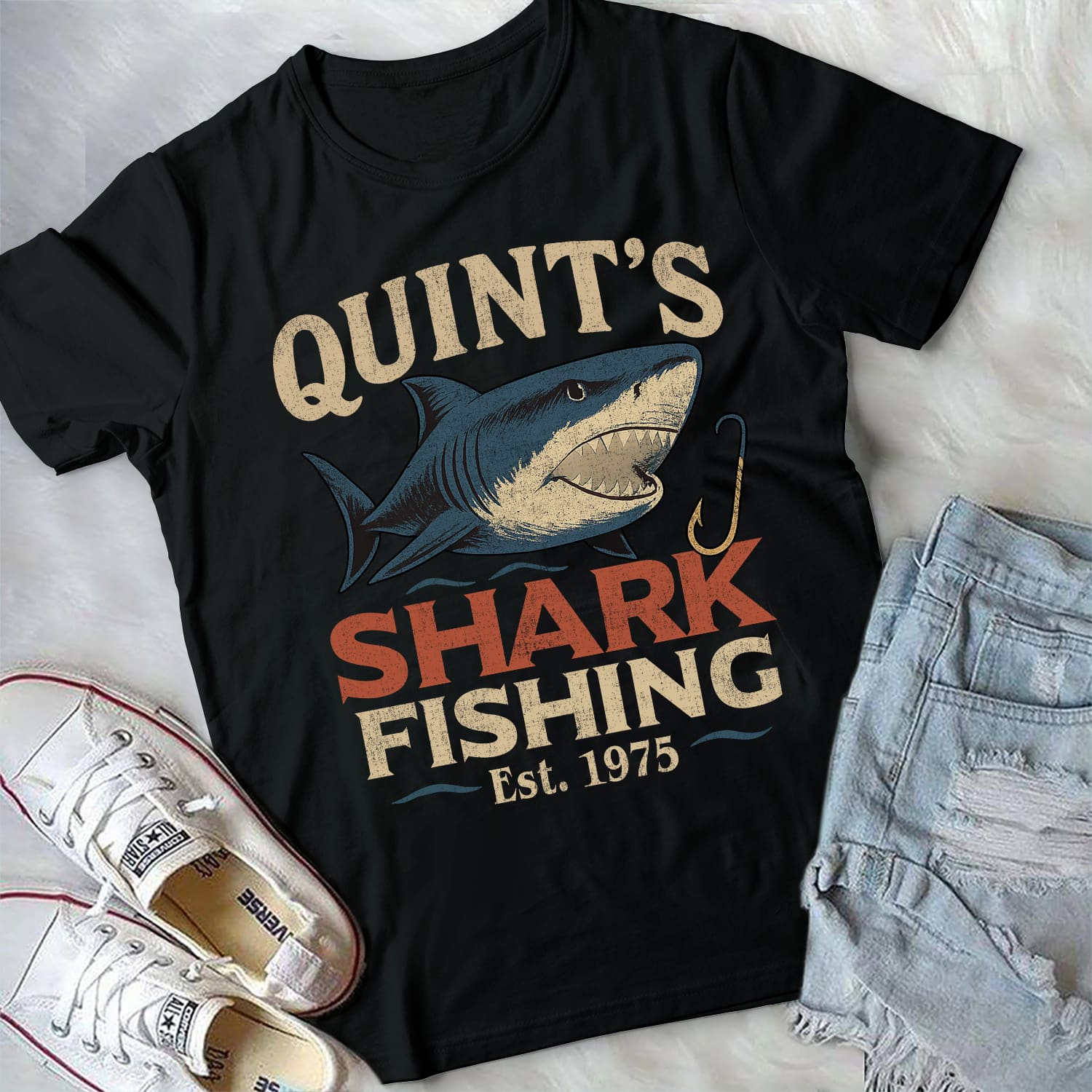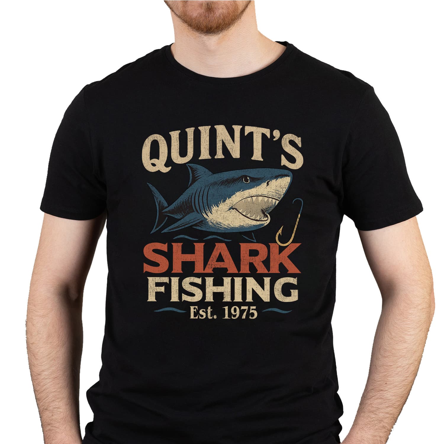 Quint’s Shark Fishing EST 1975 Vintage Retro Fishing Day T-Shirt