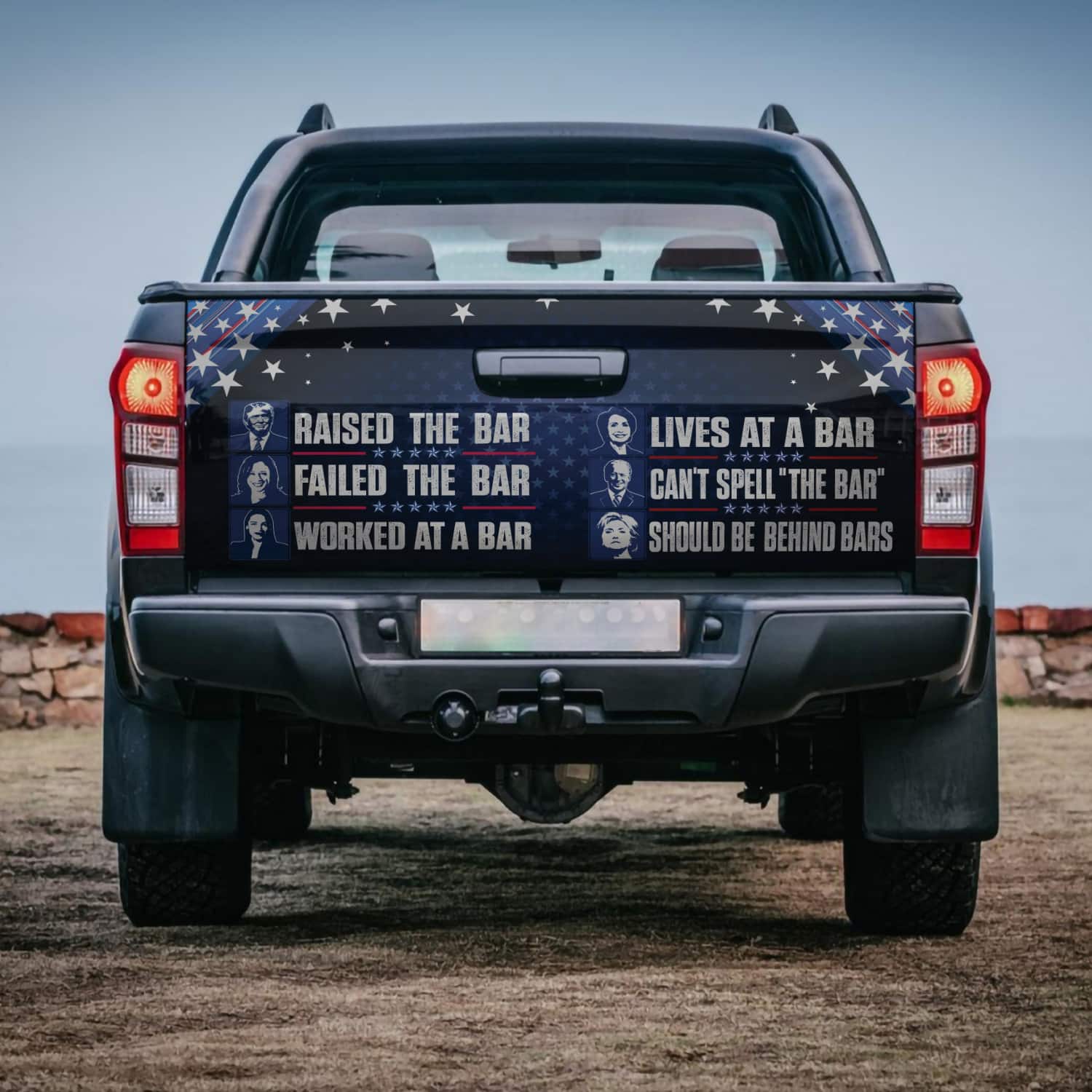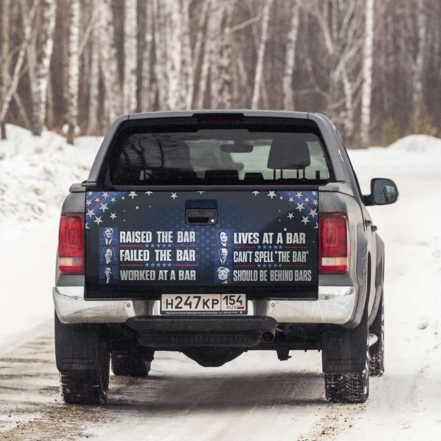 Let’s Shop Raised The Bar Failed The Bar Should Be Behind Bars Funny Trump Harris Nancy Biden Truck Tailgate Decal Sticker Wrap!