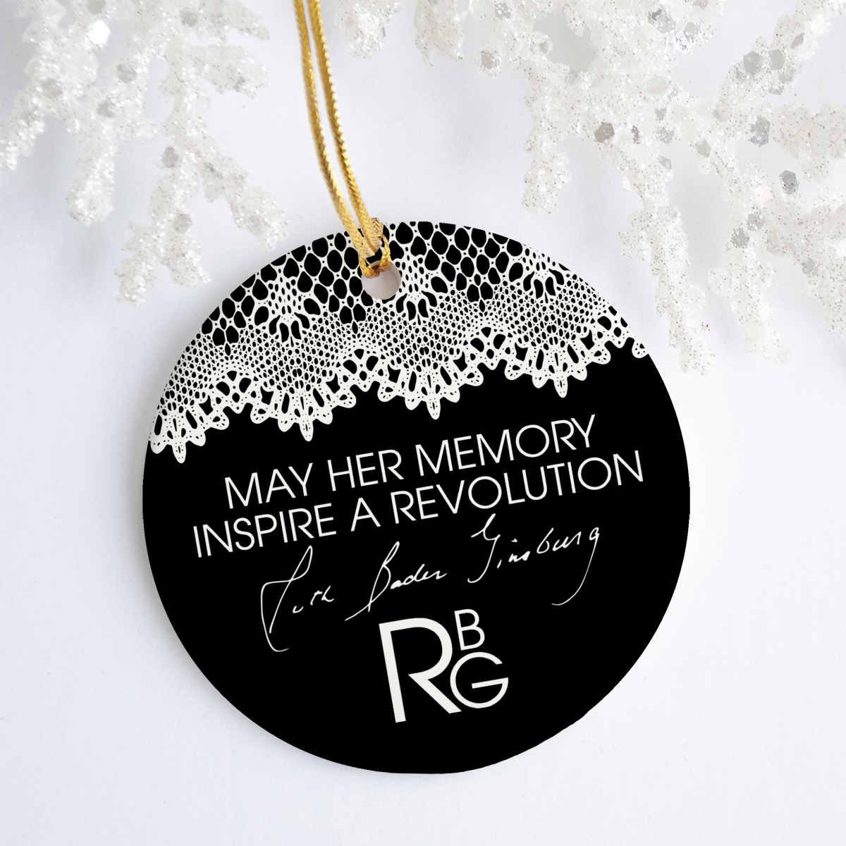 Let’s Shop Notorious RBG Collar White Lace Ruth Bader Ginsburg May Her Memory Inspire A Revolution Christmas Circle Ornament!