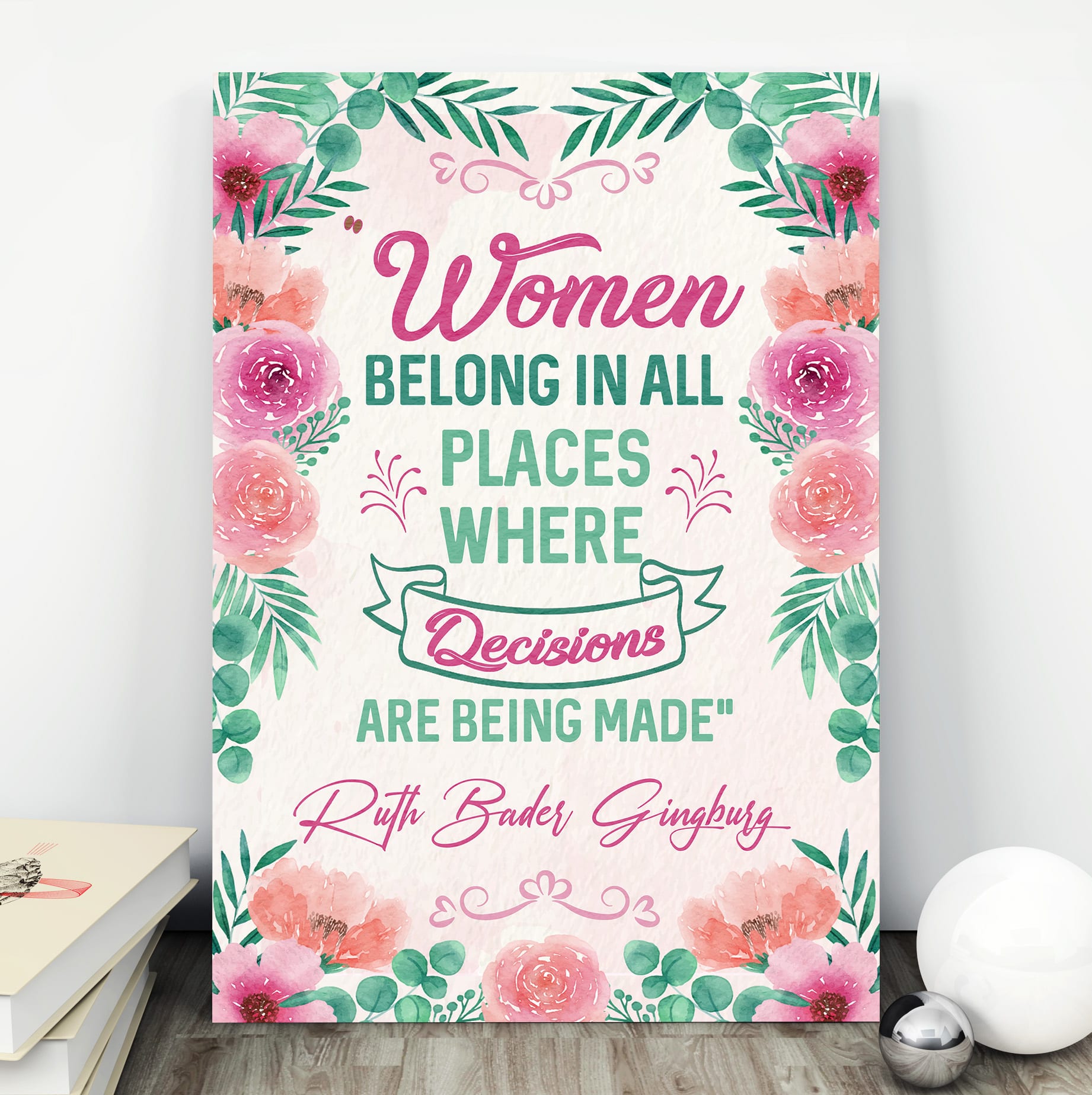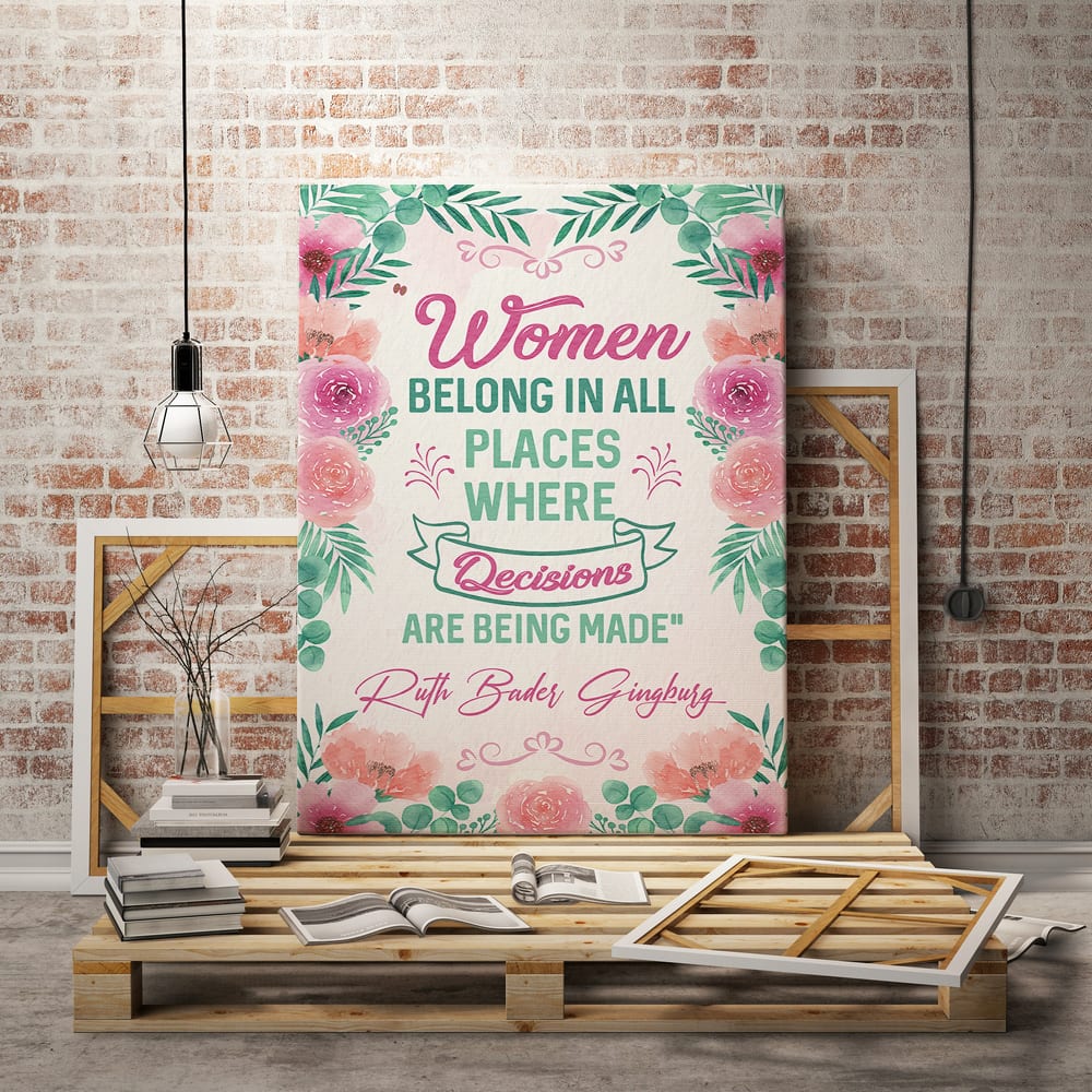 Let’s Shop Women Belong in All Places Where Decisions Are Being Made RBG Framed Canvas – Unframed Poster!
