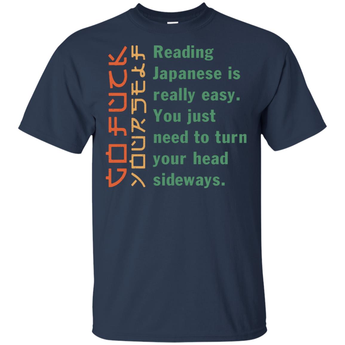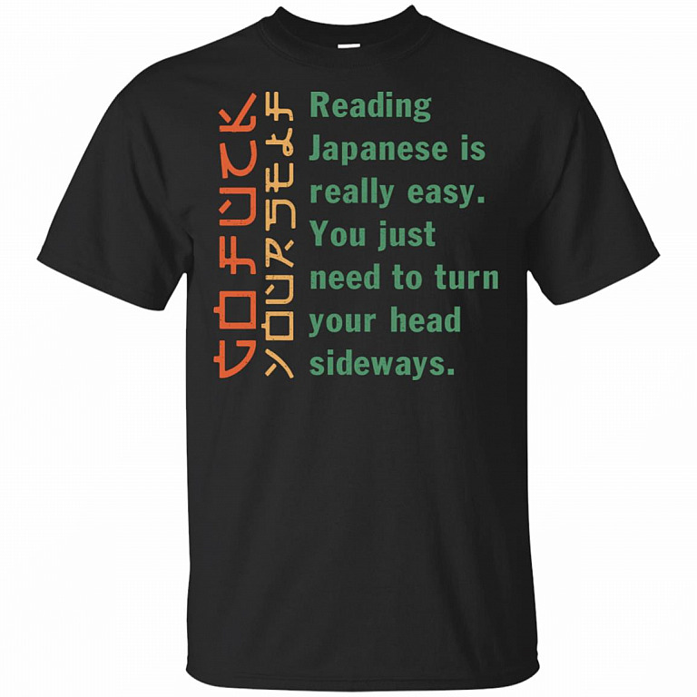 Reading Japanese is Really Easy Just Turn Your Head Sideways T-Shirt – Funny Sarcastic Apparel Gift
