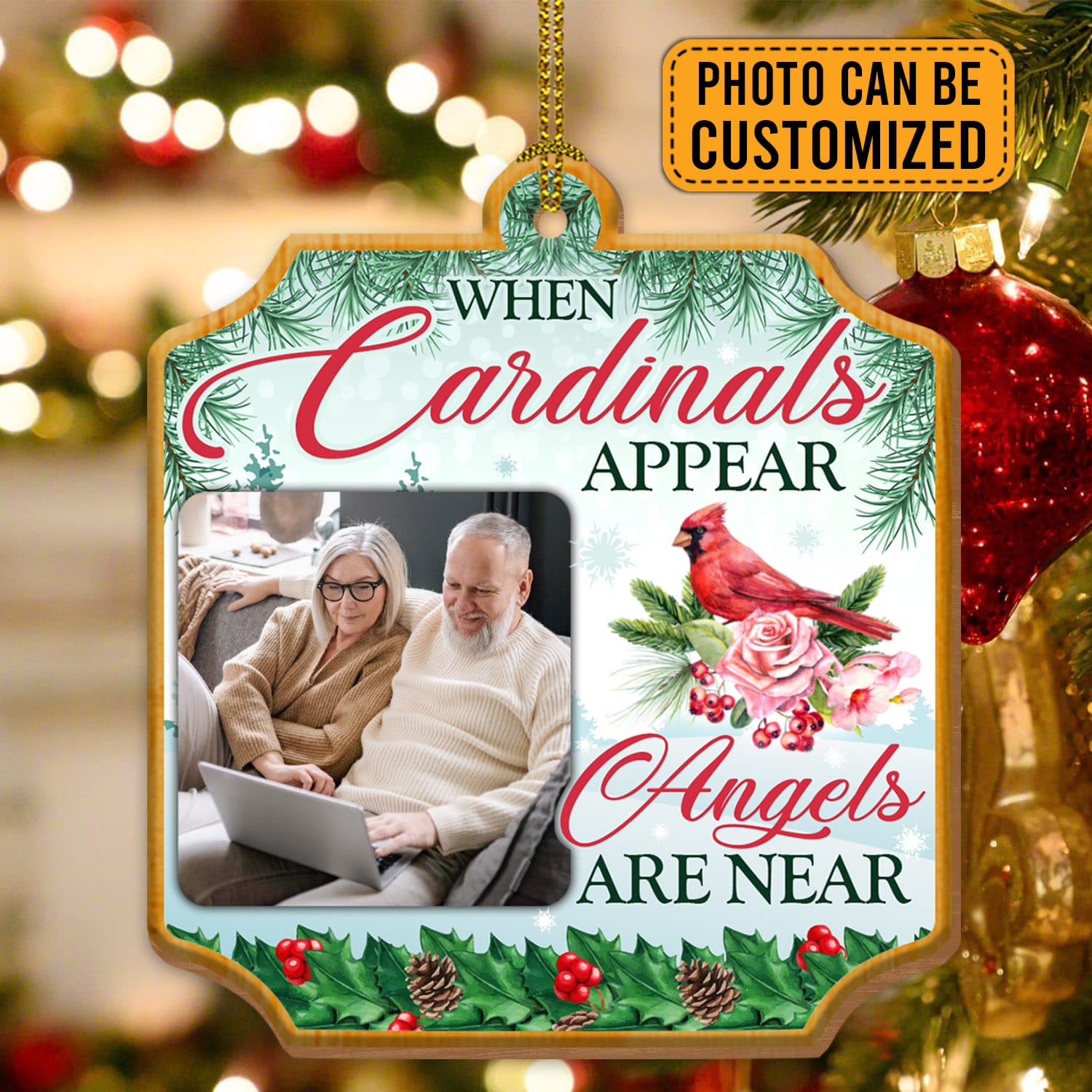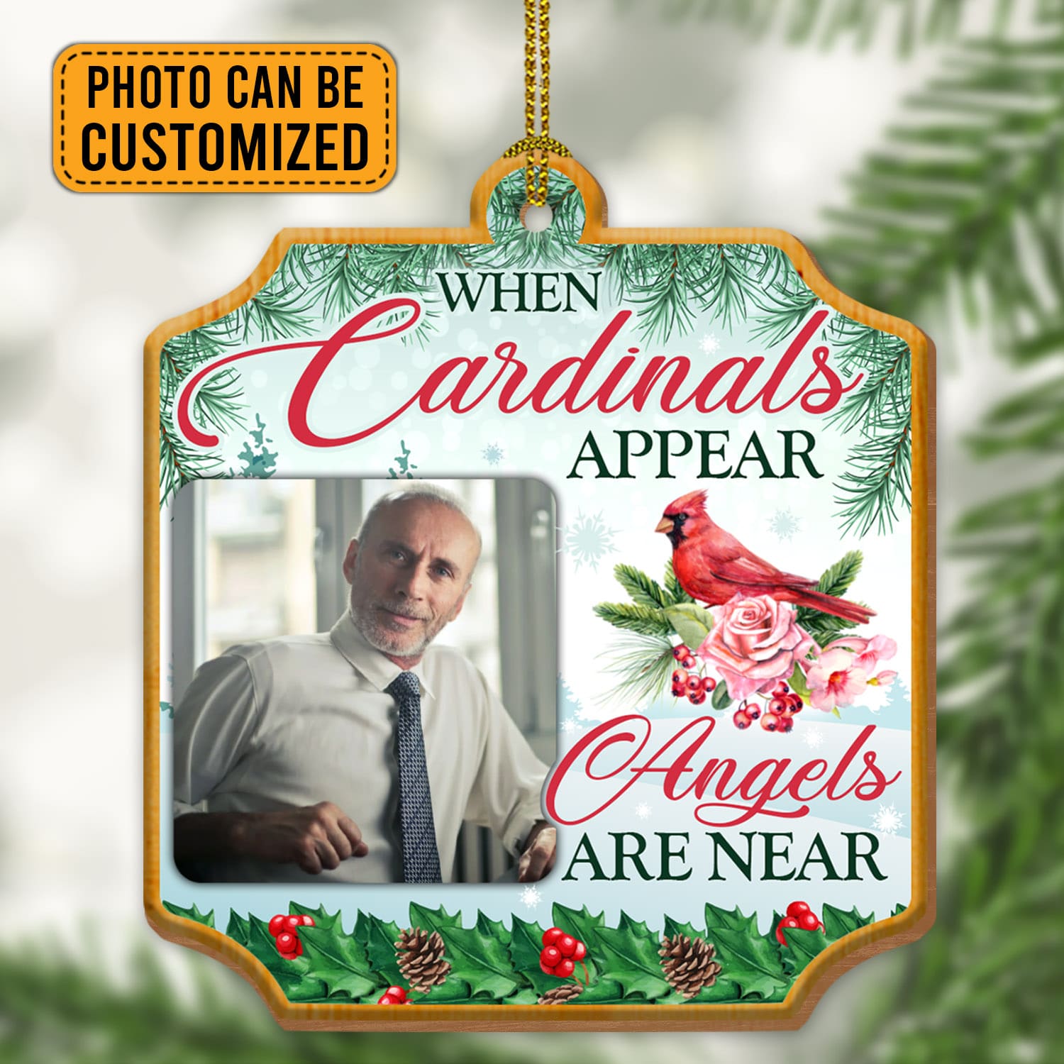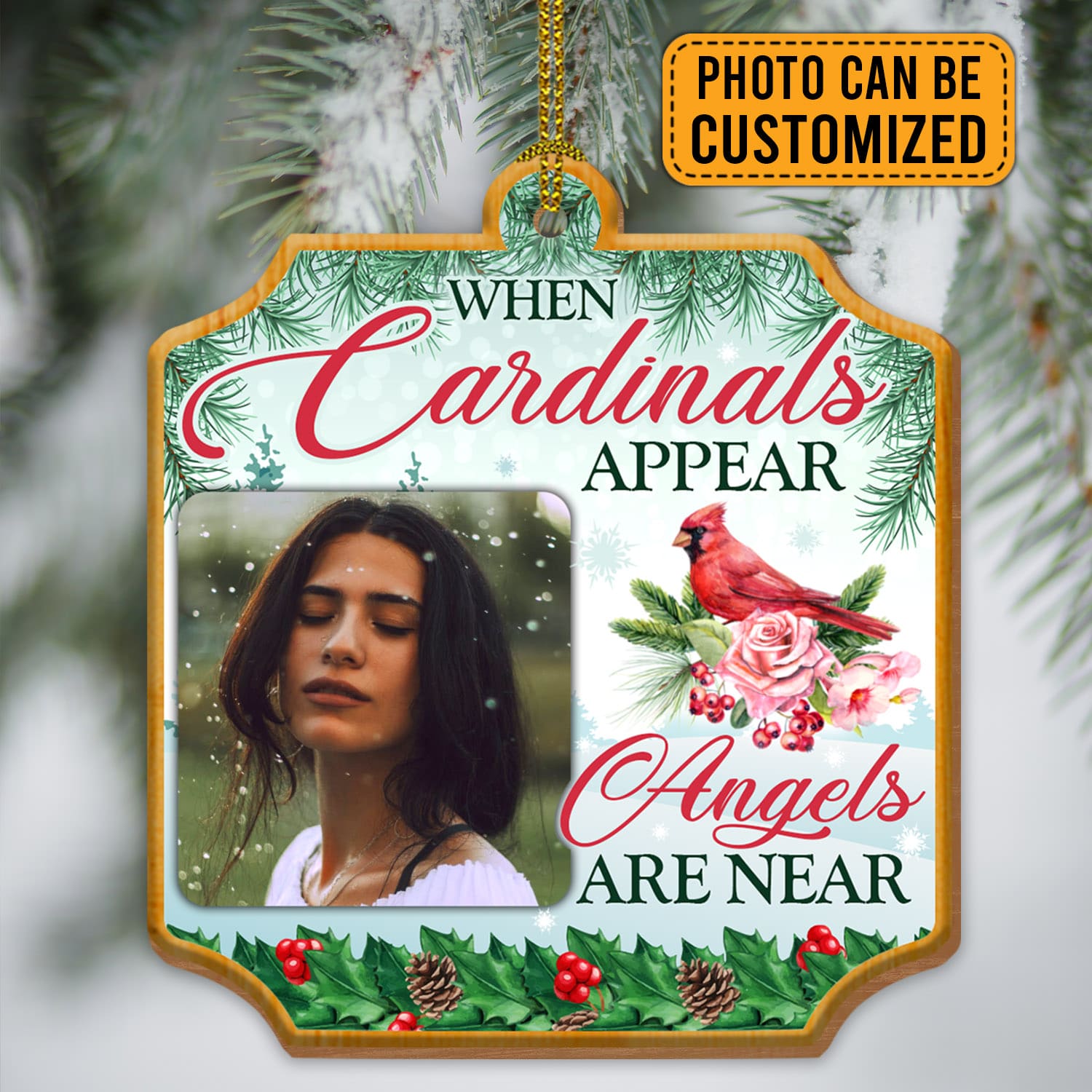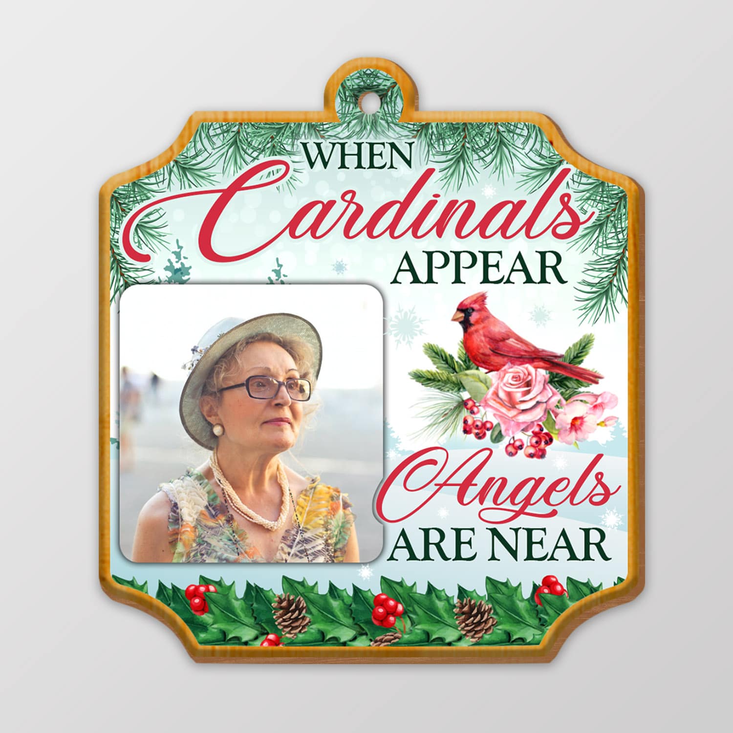 Let’s Shop Personalized Photo When Cardinal Appear Angels Are Near Memorial Custom Shaped Wooden Christmas Ornament!