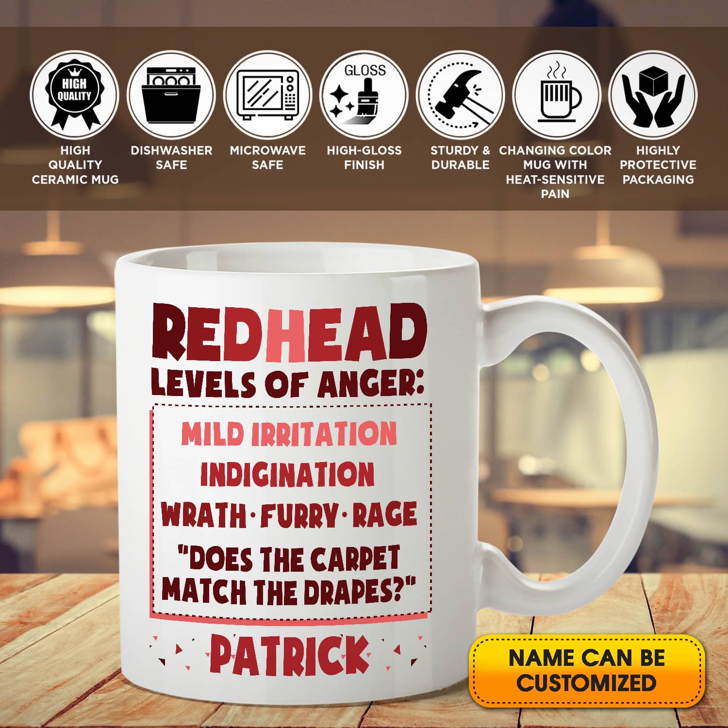 Let’s Shop Personalized Redhead Levels Of Anger Funny Ceramic Coffee Mug – Beer Stein – Funny Redhead Gifts!