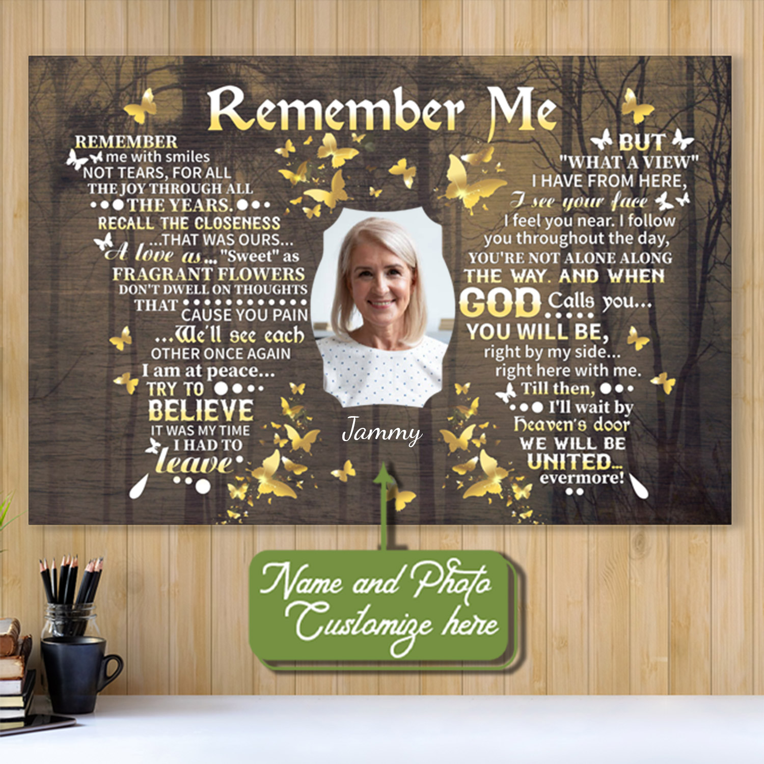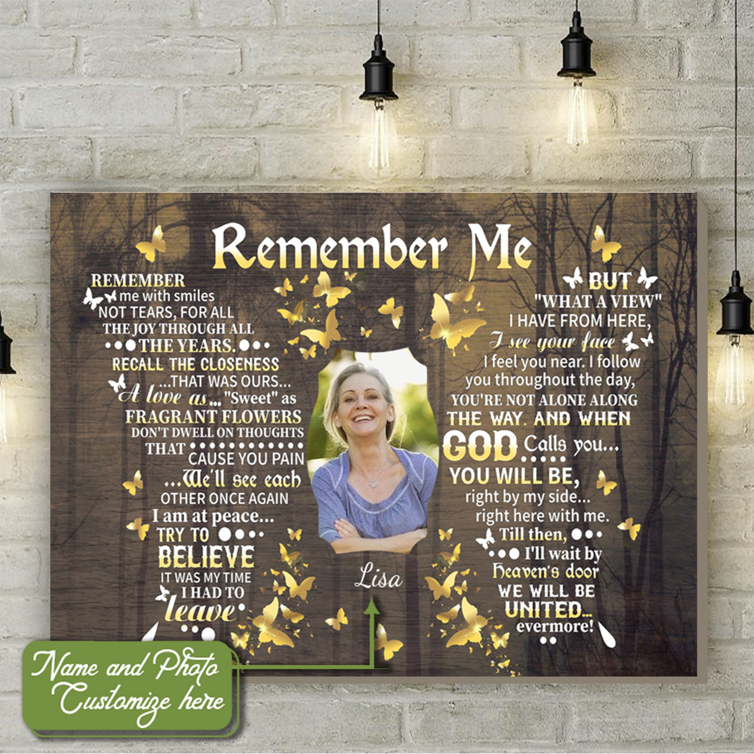 Let’s Shop Personalized Photo Butterfly Remember Me with My Smiles Not Tears Memorial Wrapped Framed Canvas Prints-Unframed Poster!