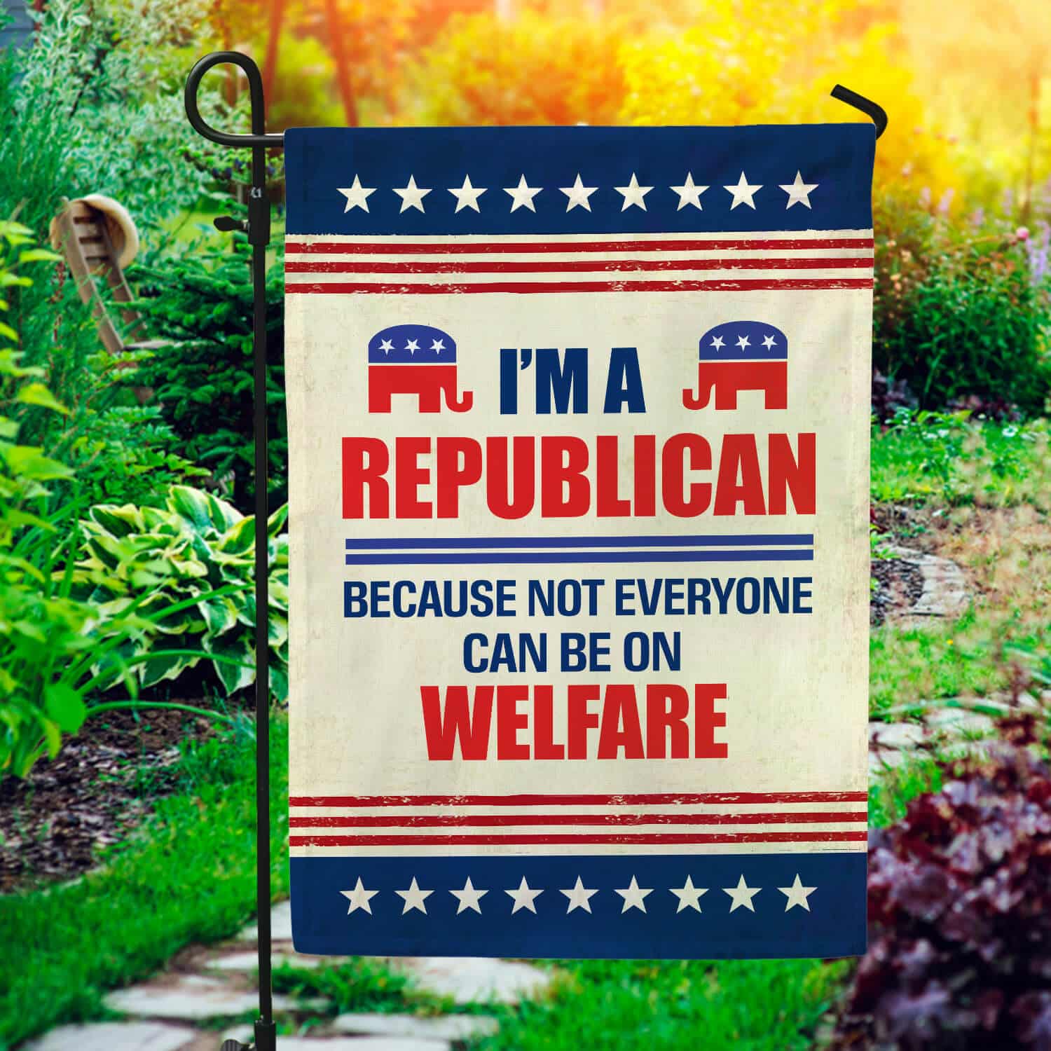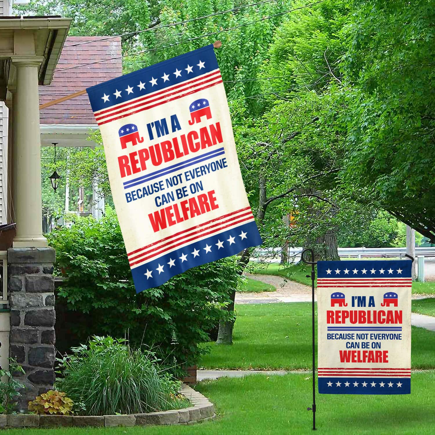 Let’s Shop I’m A Republican Because Not Everyone Can Be On A Welfare Flag – Republican Elephant Garden Flag – House Flag!