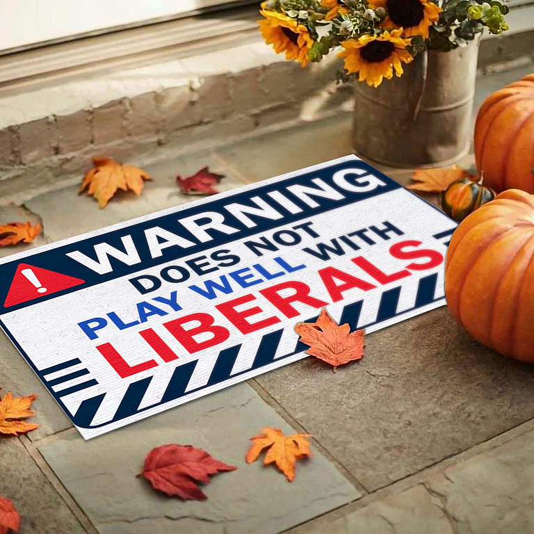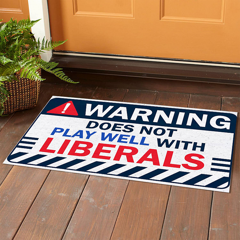 Let’s Shop Warning Does Not Play Well with Liberals Funny Conservative Republican Entrance Outdoor Decorative Doormat!