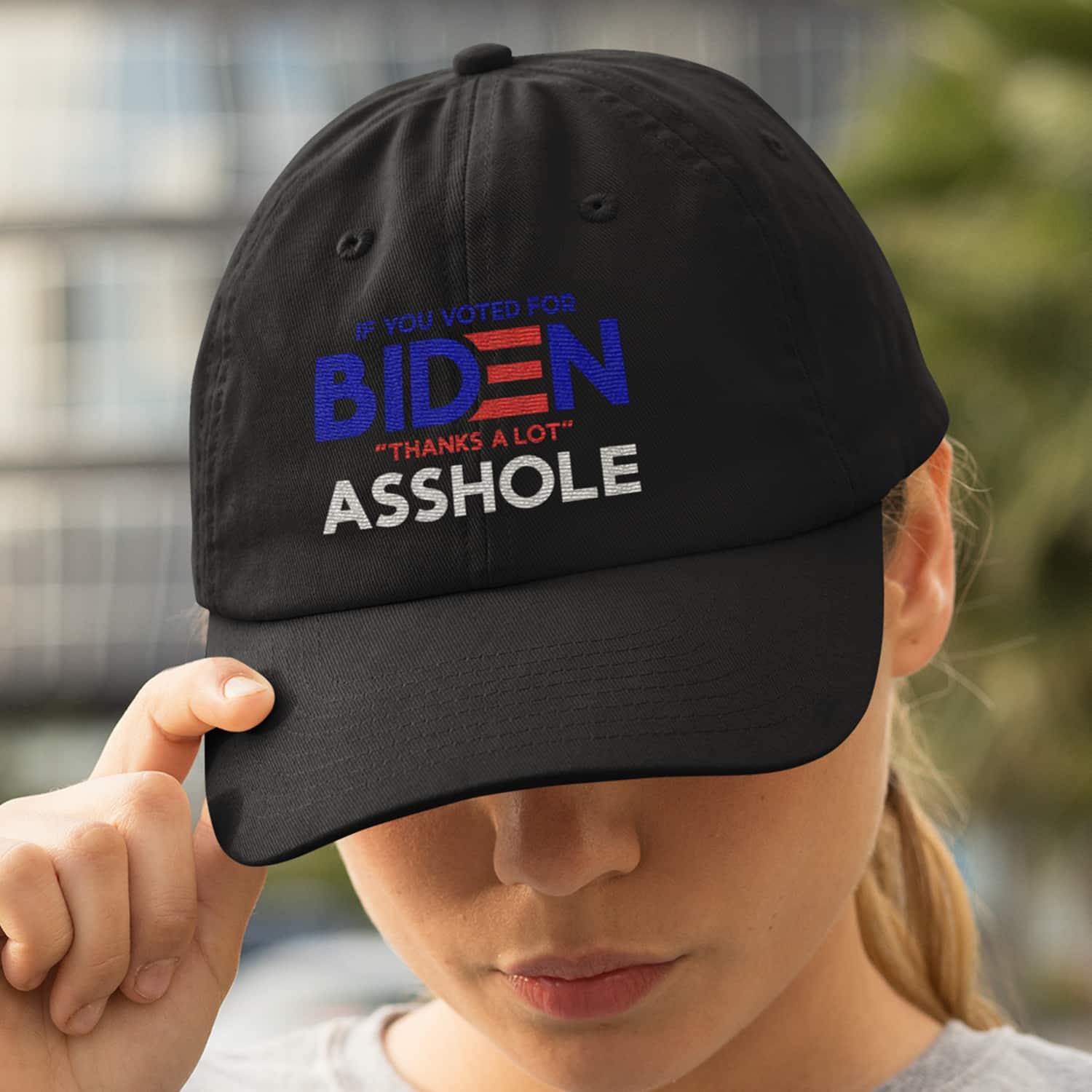 Let’s Shop If You Voted for Biden Thanks A Lot Asshole Twill Cap – High-Profile Snapback Hat!