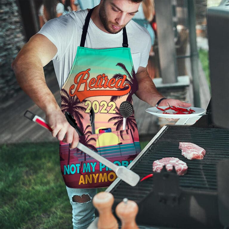 Let’s Shop Retired 2022 Not My Problem Anymore Apron – Aprons For Men Women With 3 Pockets – Grill Cooking BBQ Kitchen Chef Apron!