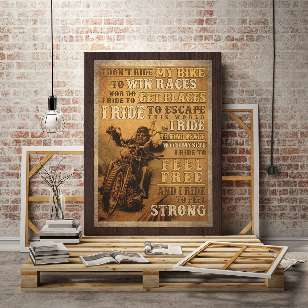 Shop Motorbike I Don’t Ride My Bike to Win Races I Ride to Feel Strong Framed Canvas – Unframed Poster.