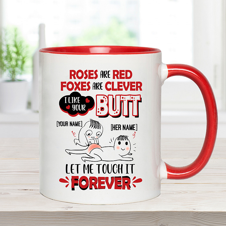 Roses Are Red Foxes Are Clever I Like Your Butt Customized Name You and Here Accent Mug, White/Red, 11 oz. Accent Mug