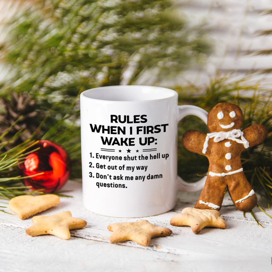 Shop Rules When I First Wake Up Everyone Shut the Hell Up Funny Coffee Mug – Water Bottle – Color Changing Mug.