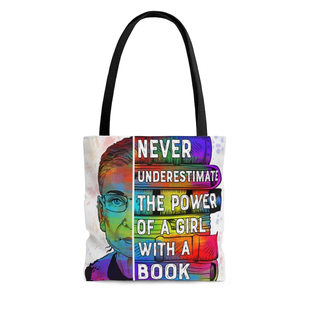 Let’s Shop Never Underestimate the Power of a Girl with a Book RBG All Over Print Tote Bag – Shoulder Bag – Shopping Bag!