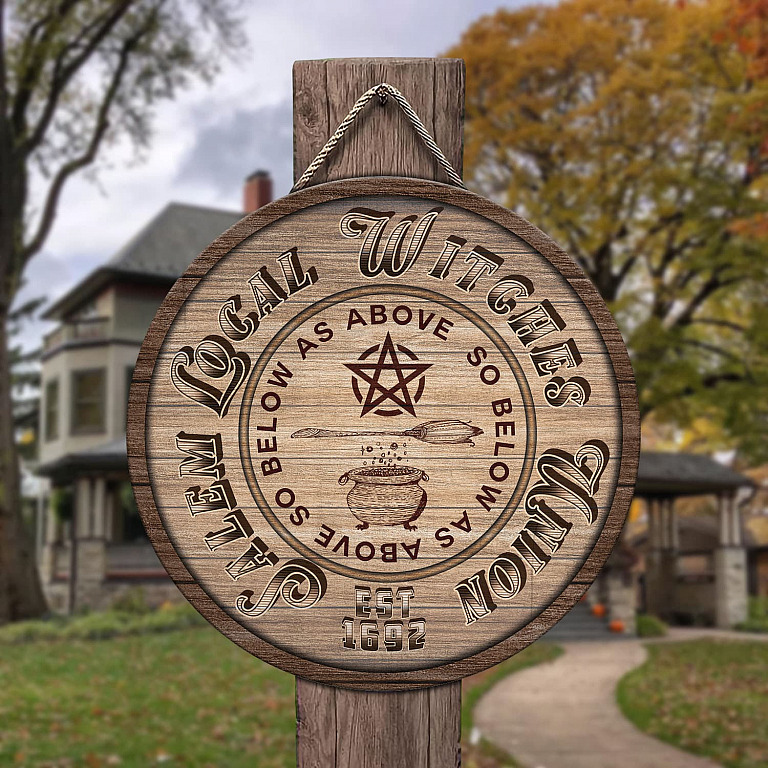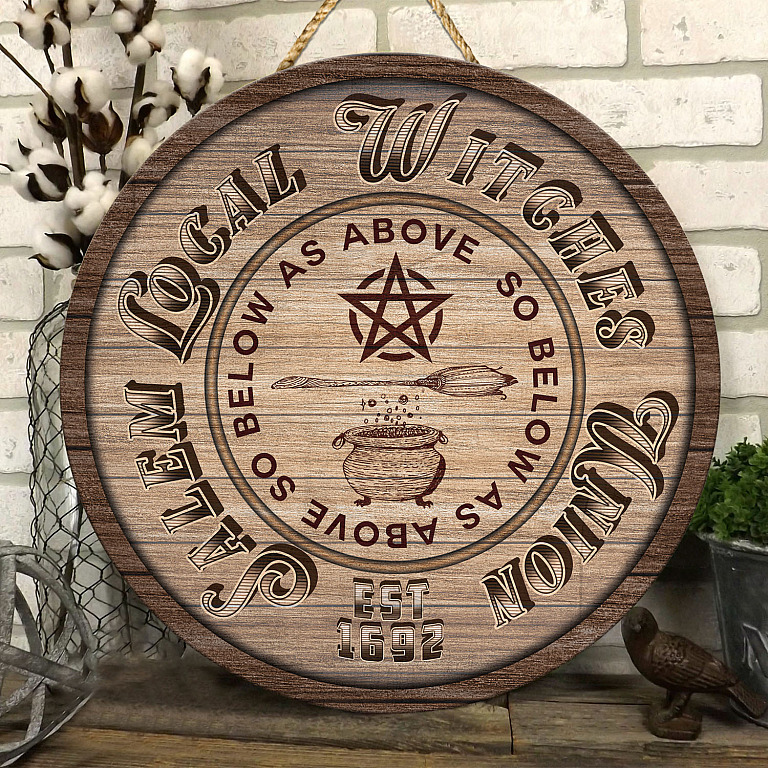 Let’s Shop Salem Local Witches Union So Belove As Above Est 1692 Circle Wooden Door Sign – Front Porch Sign Decor!