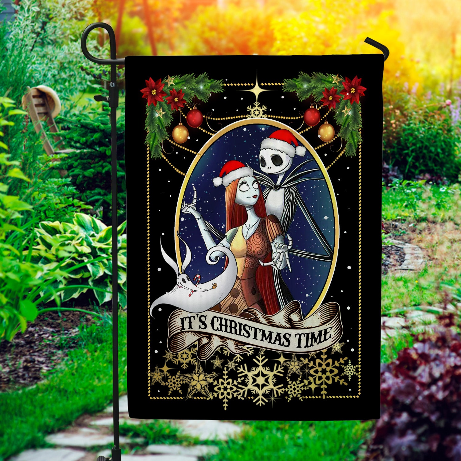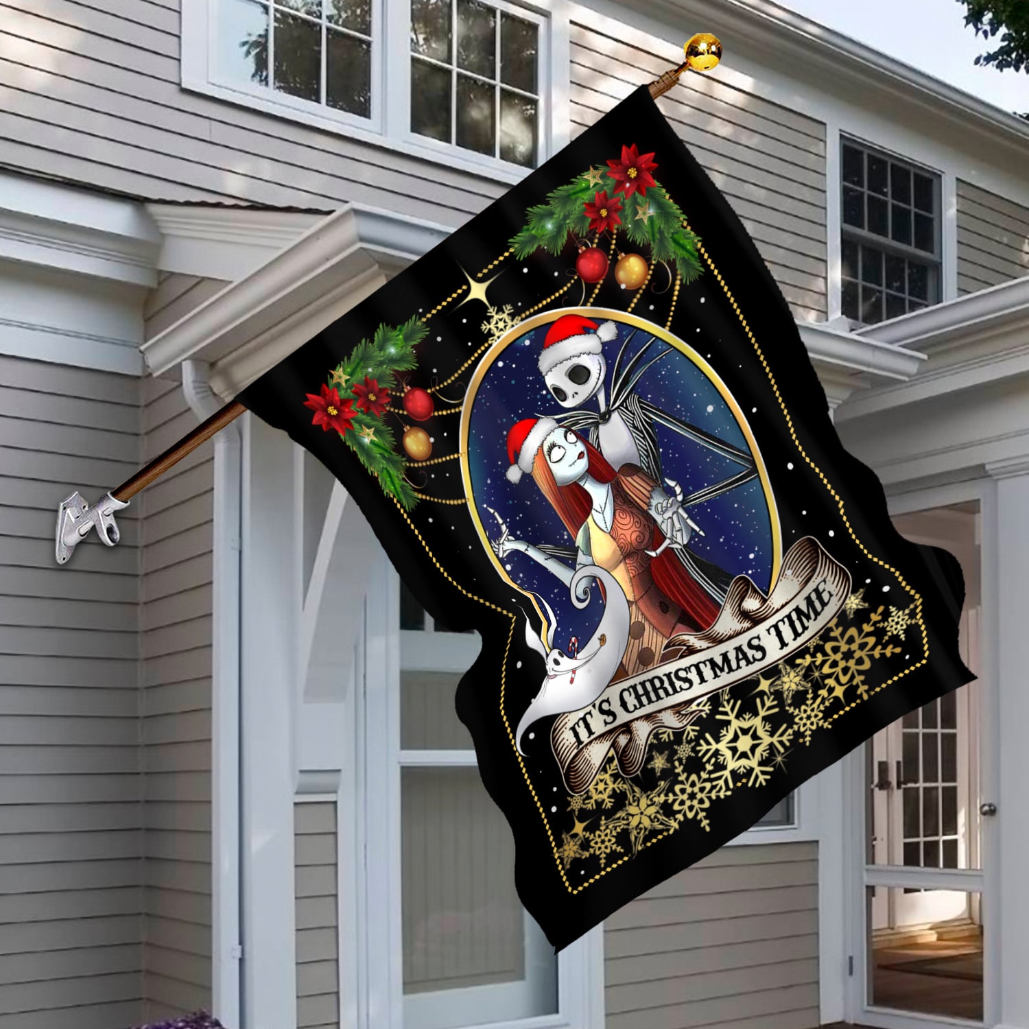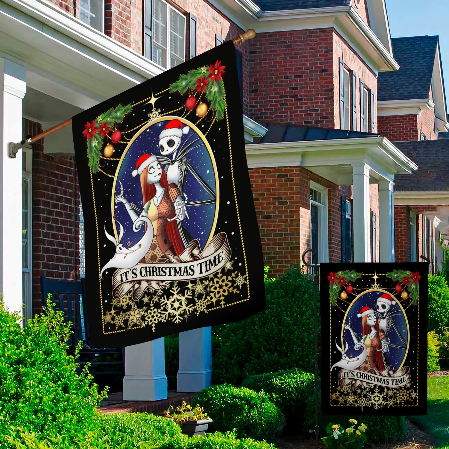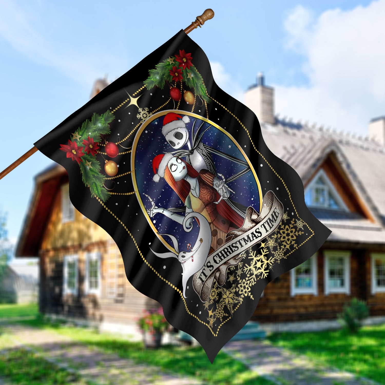 Let’s Shop Jack Skellington and Sallie It’s Christmas Time Decorative Garden Flag – Nightmare Christmas House Flag – Wall Flag!