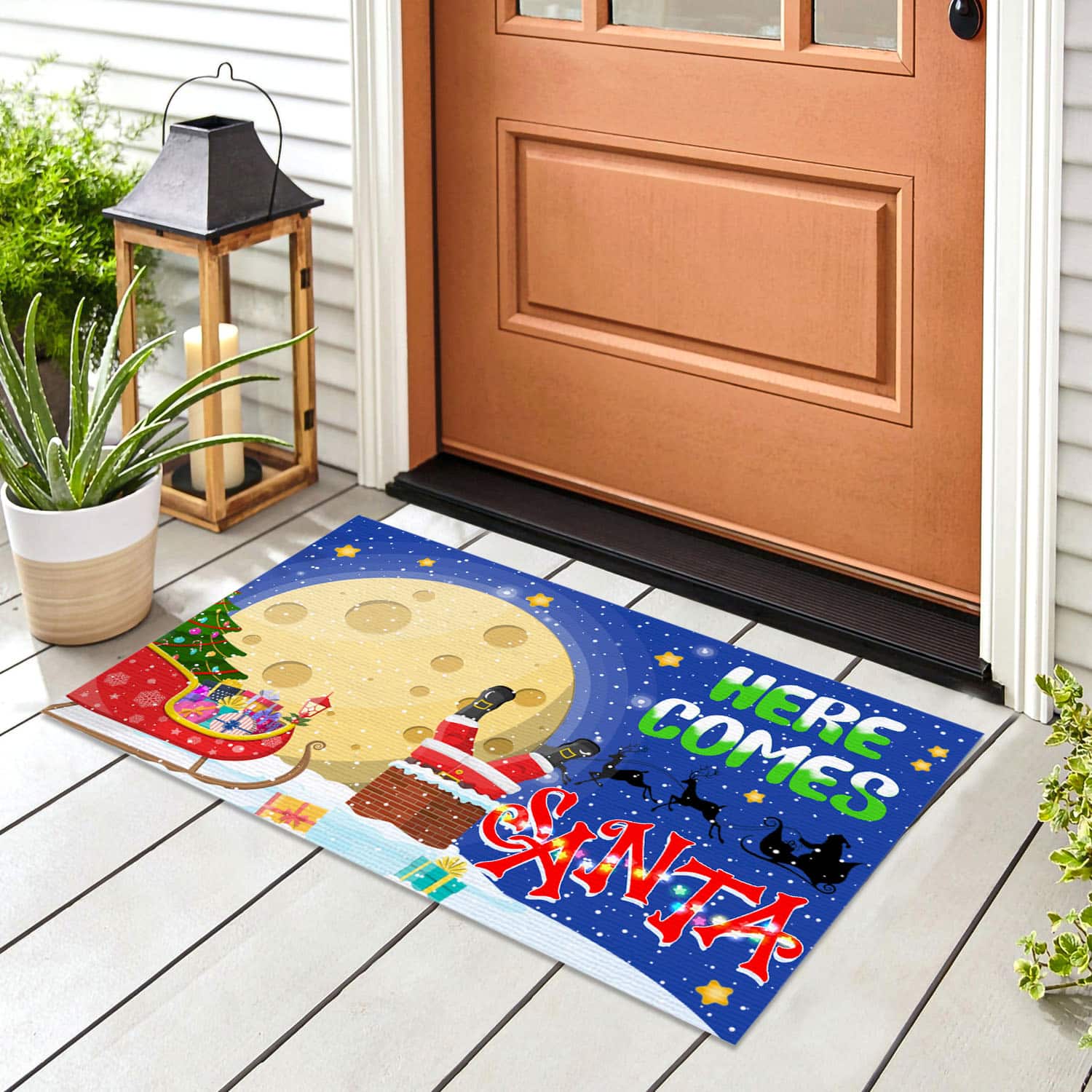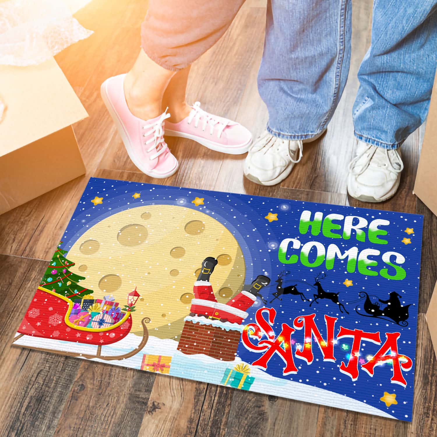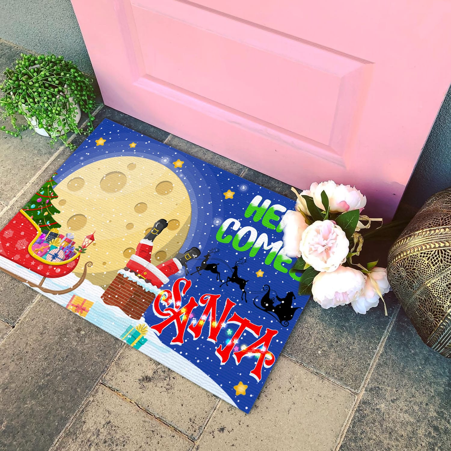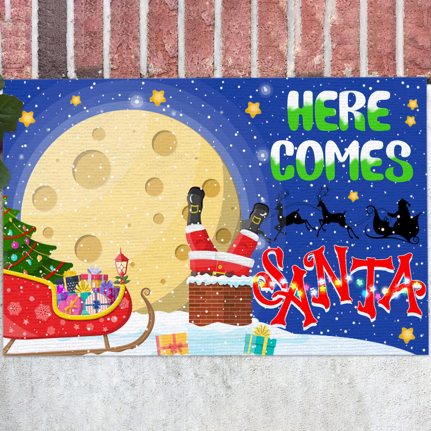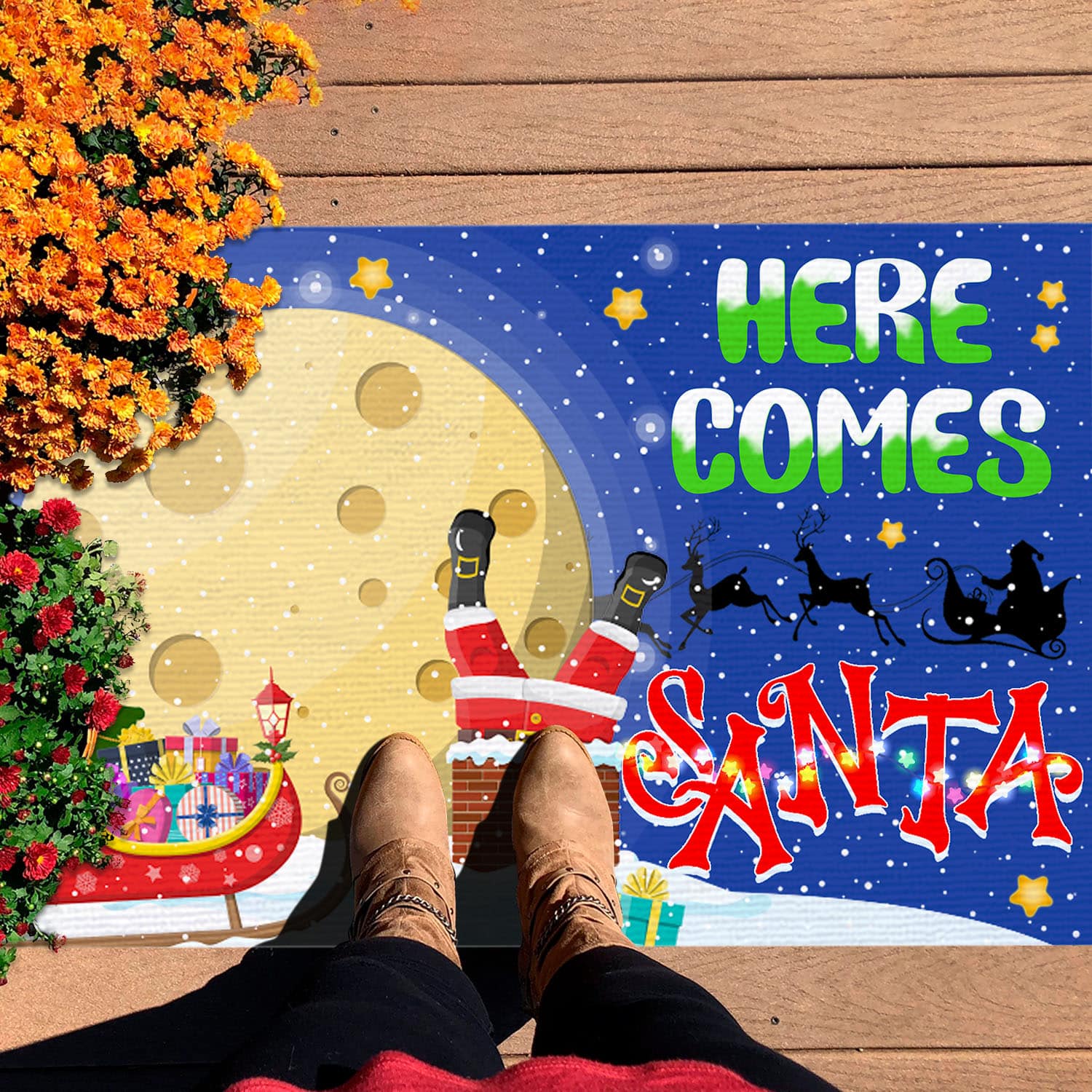 Let’s Shop Here Comes Santa Christmas Outdoor Indoor Doormat – Funny Holiday Chimney Door Mat Welcome Rug!