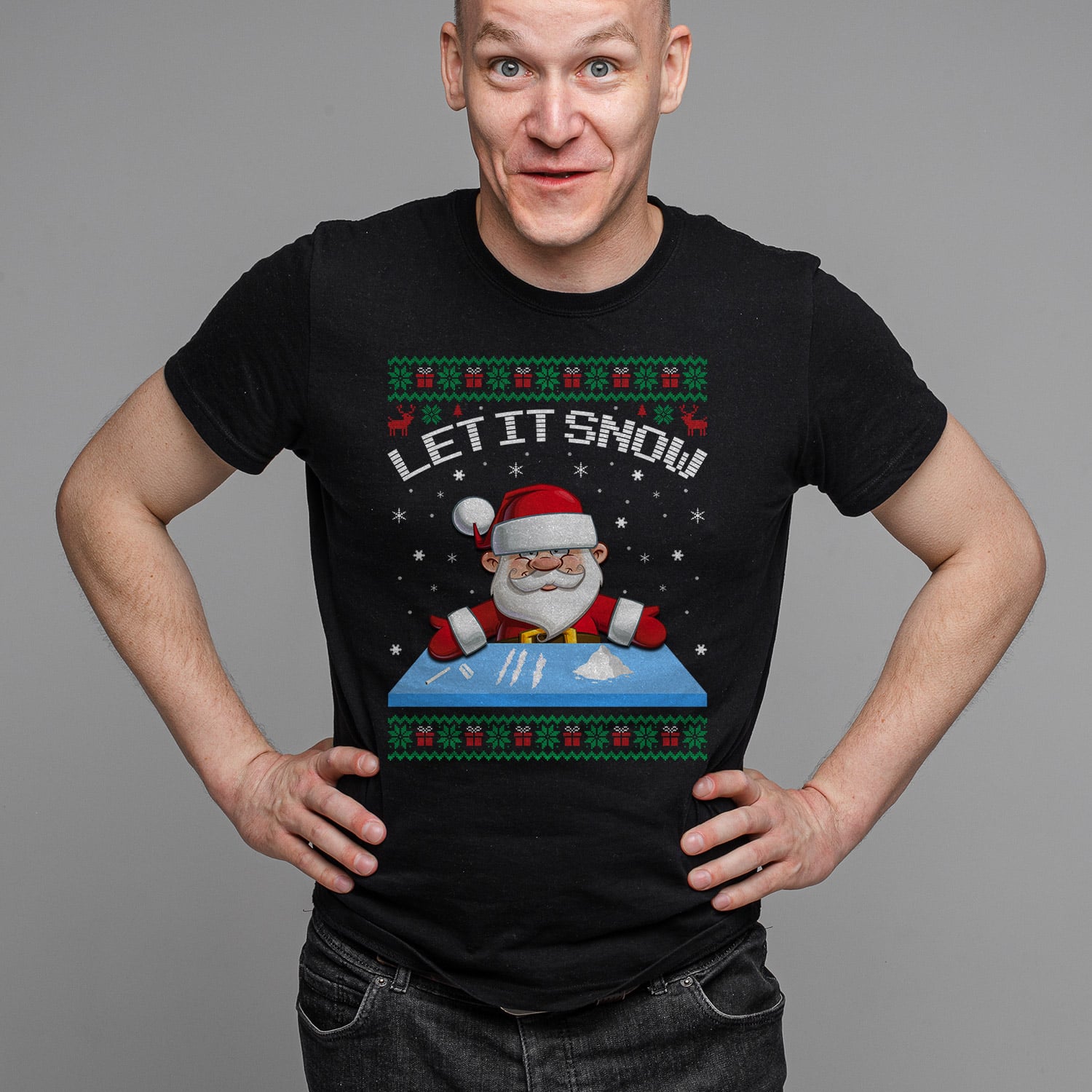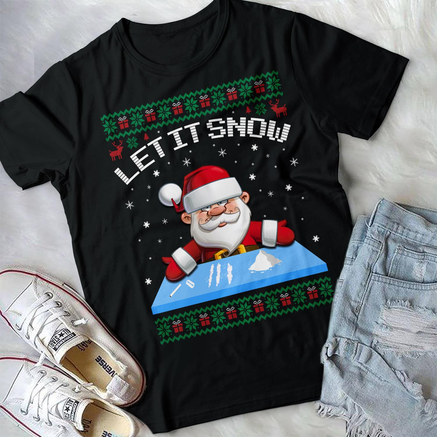 Santa Let It Snow Hilarious Humor Joke Funny Ugly Christmas T-Shirt