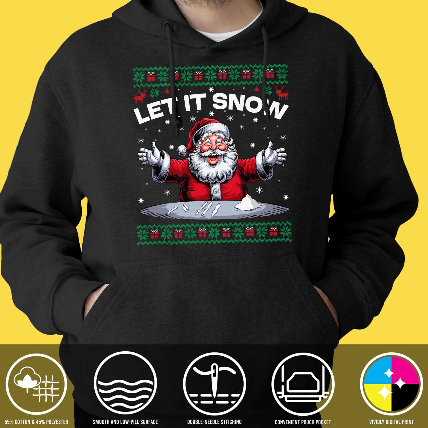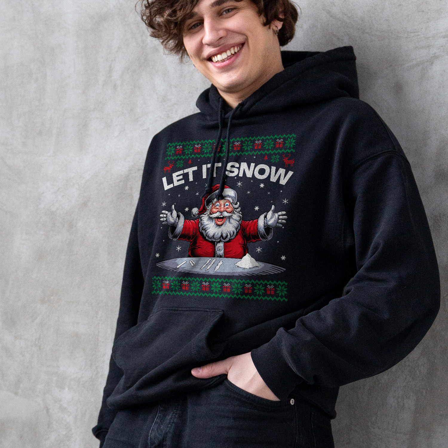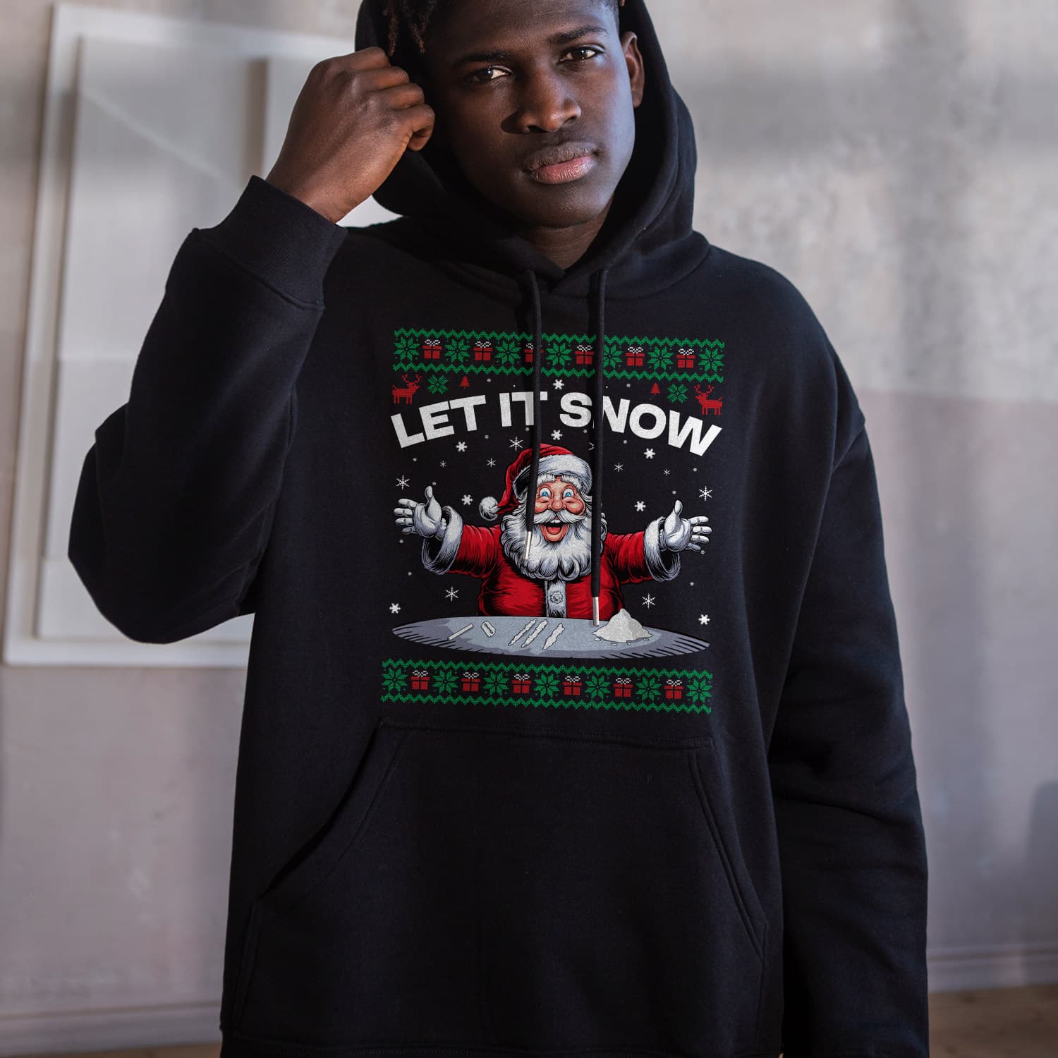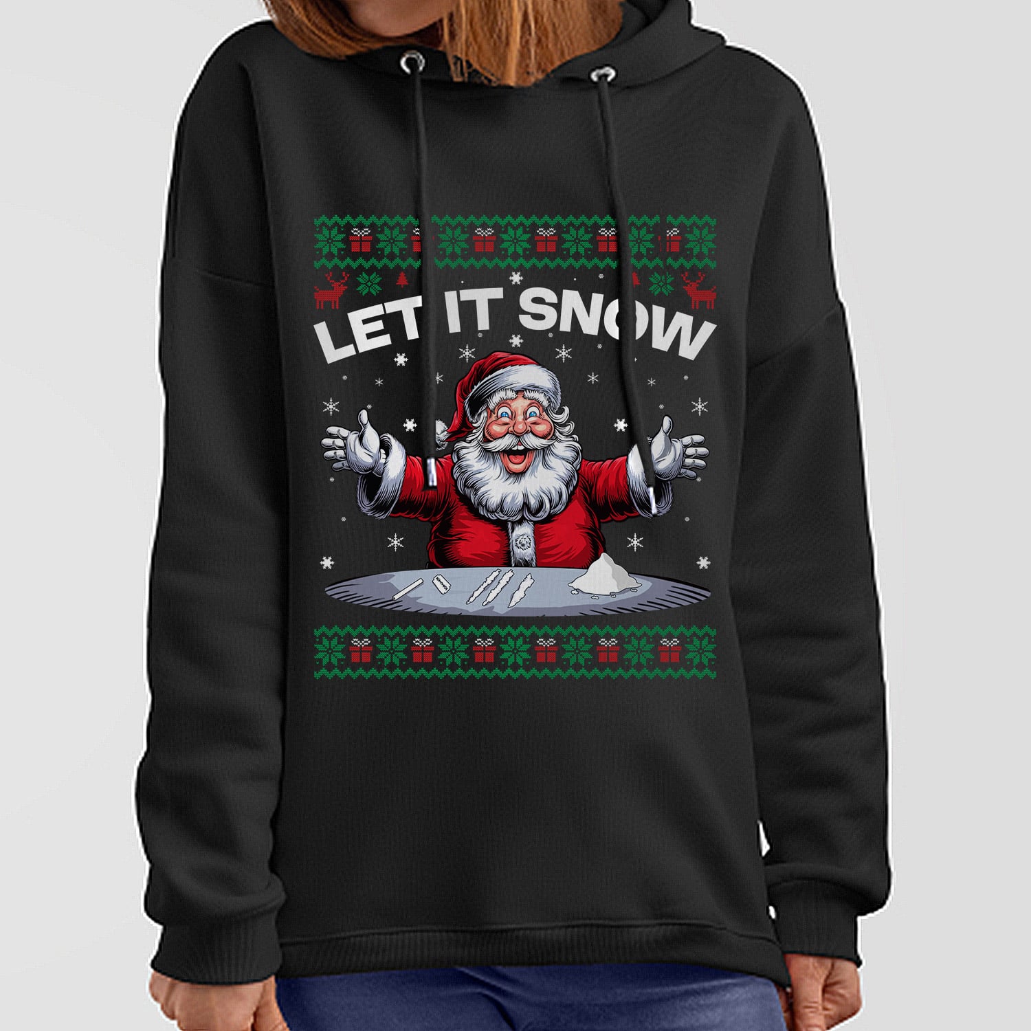 Santa Let It Snow Humorous Funny Ugly Christmas Hoodie – Sweatshirt – Long Sleeve Shirt – Sweater