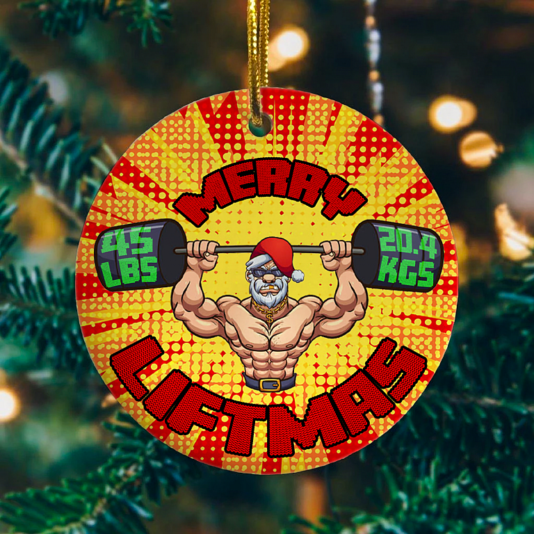Let’s Shop Funny Muscular Santa Lifting Weights Merry Liftmas 45 LBS 20.4 KGS Christmas Decorative Ornament Keepsake!