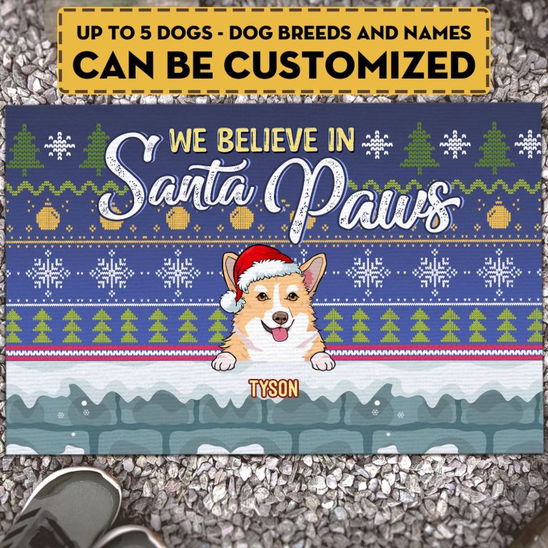 Let’s Shop Personalized Dog Breeds We Believe In Santa Paws Christmas House Doormat – Outdoor Indoor Doormat!