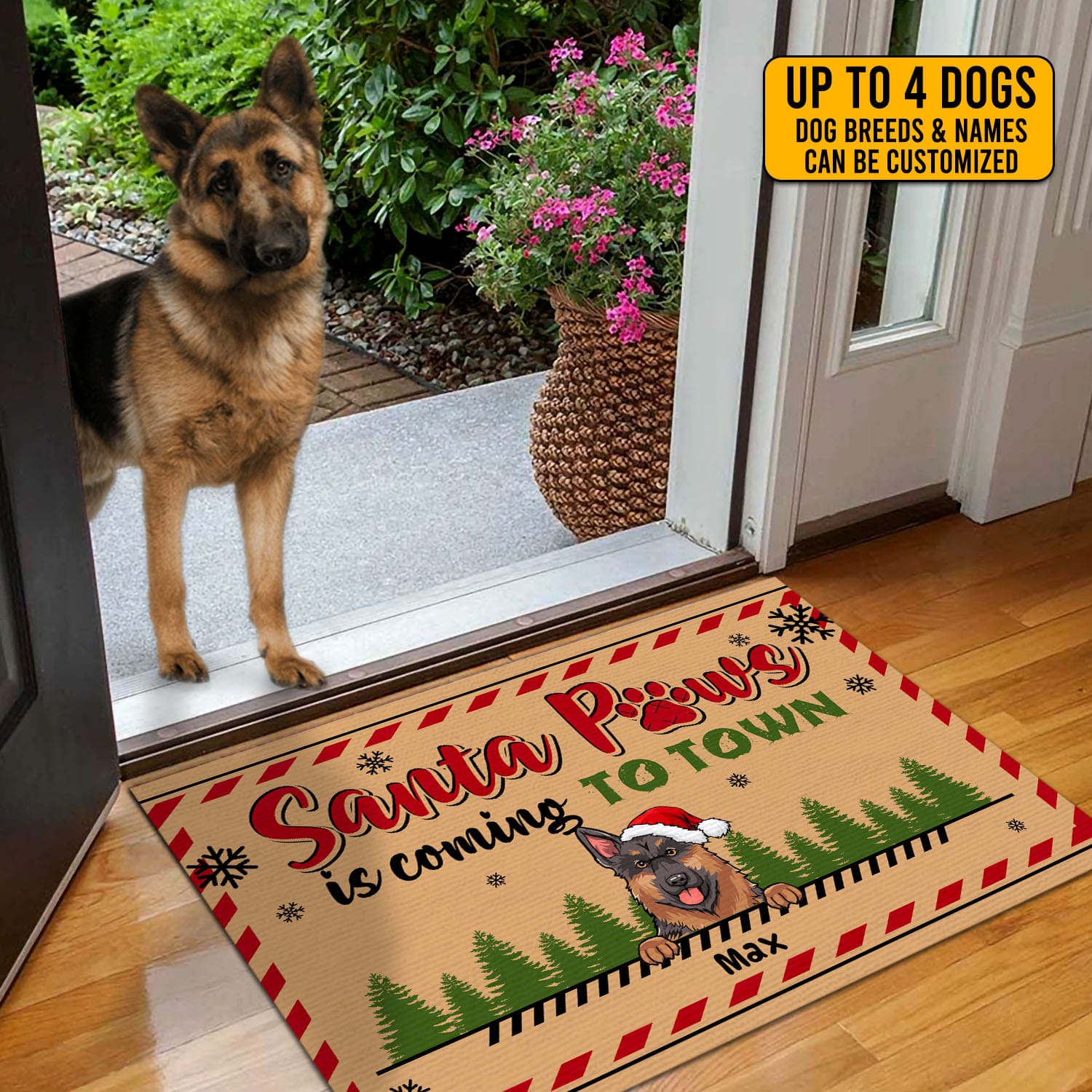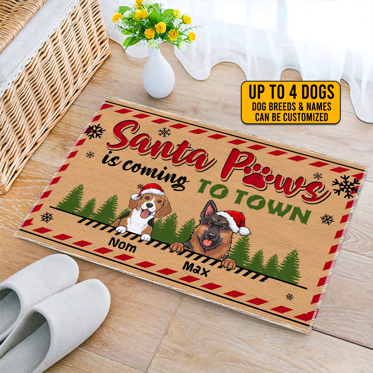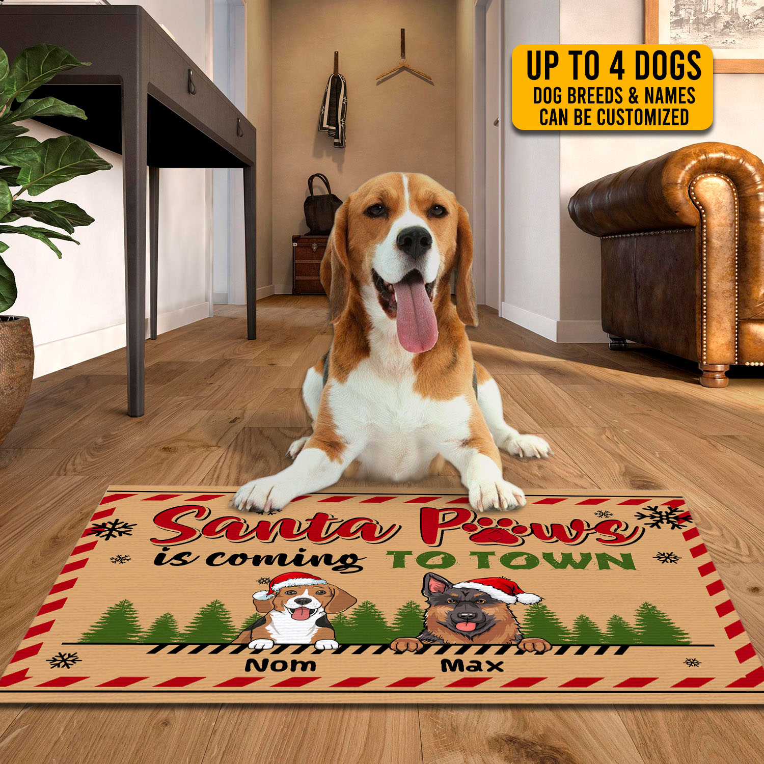 Let’s Shop Santa Paws Is Coming To Town Personalized Dog Christmas Indoor Doormat – Custom Dog Breed Christmas Outdoor Mat!